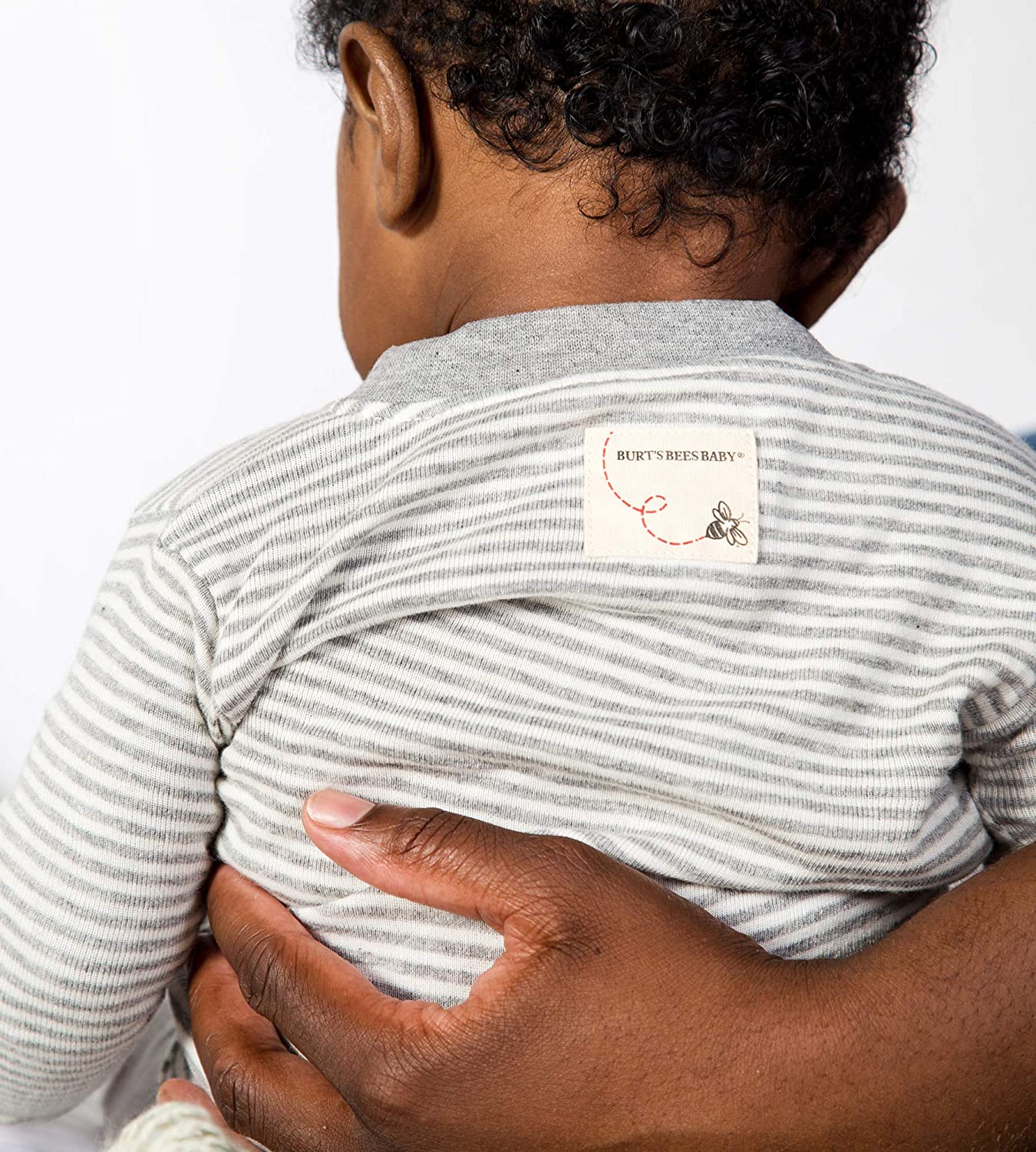 Burt's Bees Baby Sleepers - Snug fitting zip up footie pajamas are made with from The Purest Layer: 100% organic GOTS certified* cotton - breathable & great for sensitive skin. Sporty yet sweet, these footed PJs are snuggly soft and cuddle-ready. Designed with safety in mind, these sleepers feature elastic ankles to keep footies in place & non-slip "bee grips" for extra stability - great for little bees on the move! Diagonal zip front makes for easy diaper changes and snap tab at neck protects delicate skin. *GOTS Certificate Registration No: 831717
