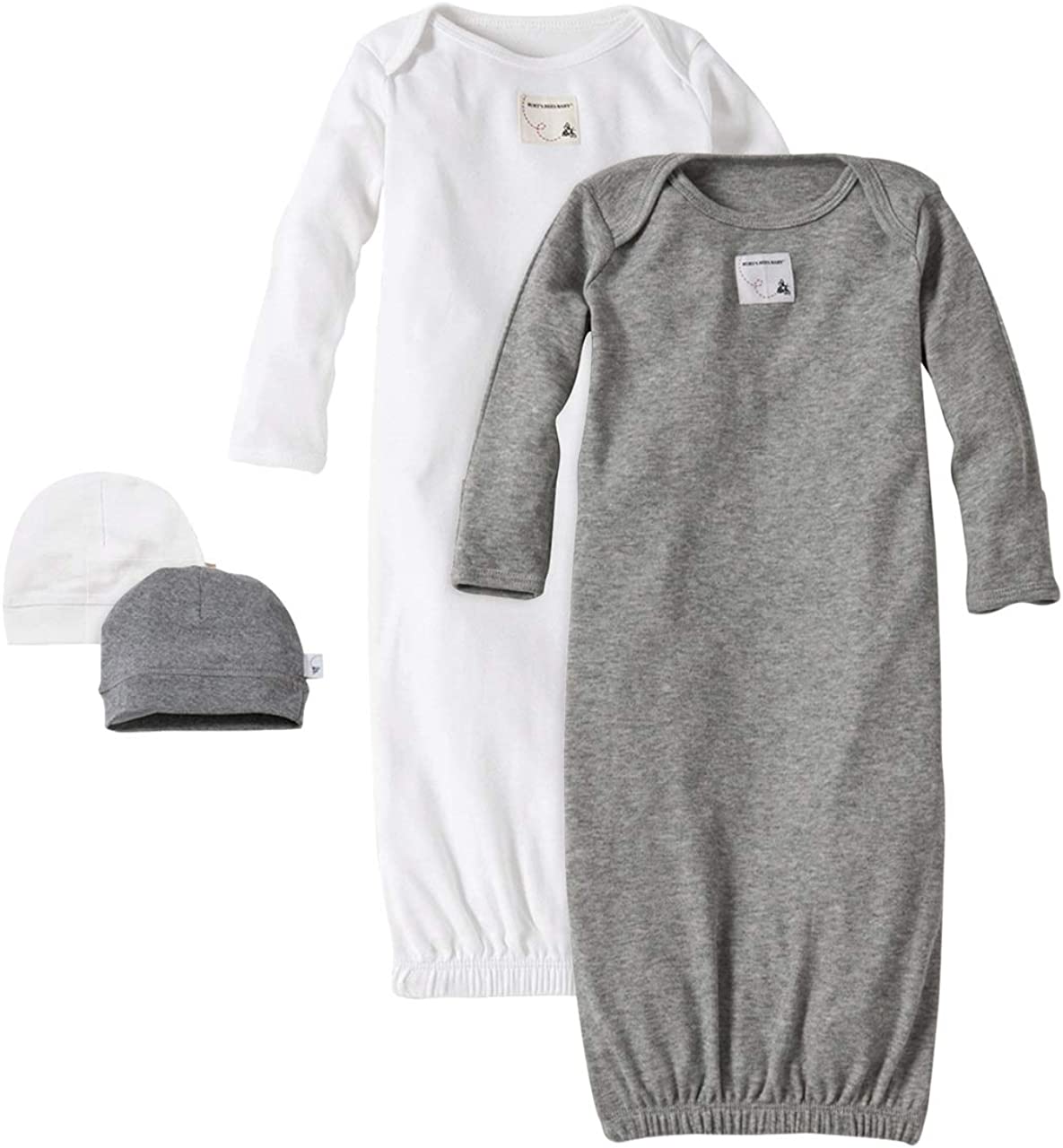 Burt's Bees Baby - Newborn Gown & Cap Set - New parents love these 100% organic cotton gowns for their newborns! The lap-shoulder style neckline stretches so that you can easily pull over their head, or pull straight down to avoid going over their head. The encased elastic hem makes for easy changes. The cozy ribbed cotton is ideal for the newest and most sensitive of little ones.