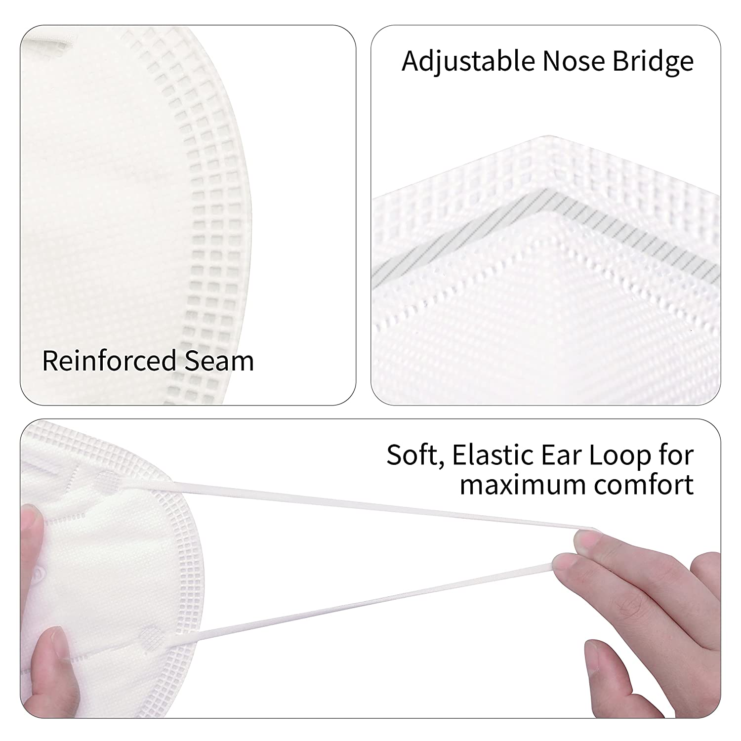 BYD CARE KN95 Respirator, 50 Pieces, Breathable & Comfortable Foldable Safety Mask with Ear Loop for Tight Fit, GB2626 White , Regular