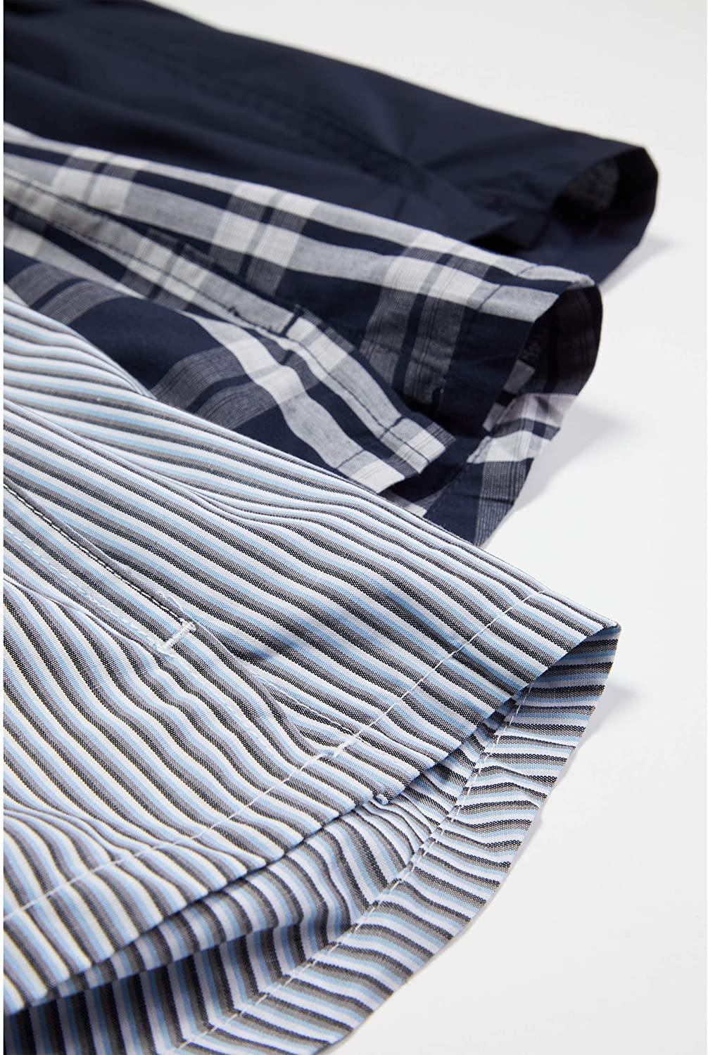 Cotton woven boxers multipack, classic fit with updated elastic for extra comfortable leg openings and a soft, breathable, durable cotton blend waistband with iconic Calvin Klein logo. Functional fly 3-pack