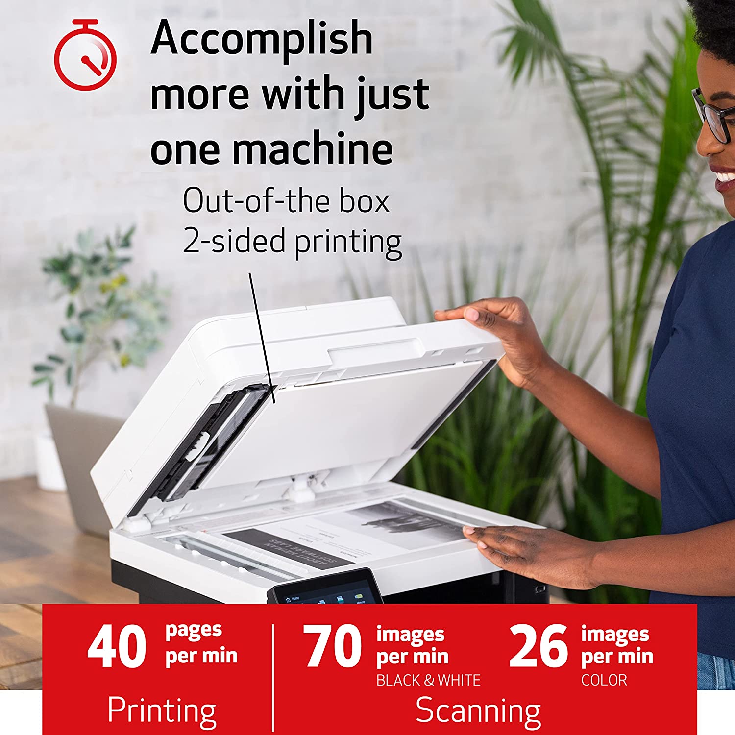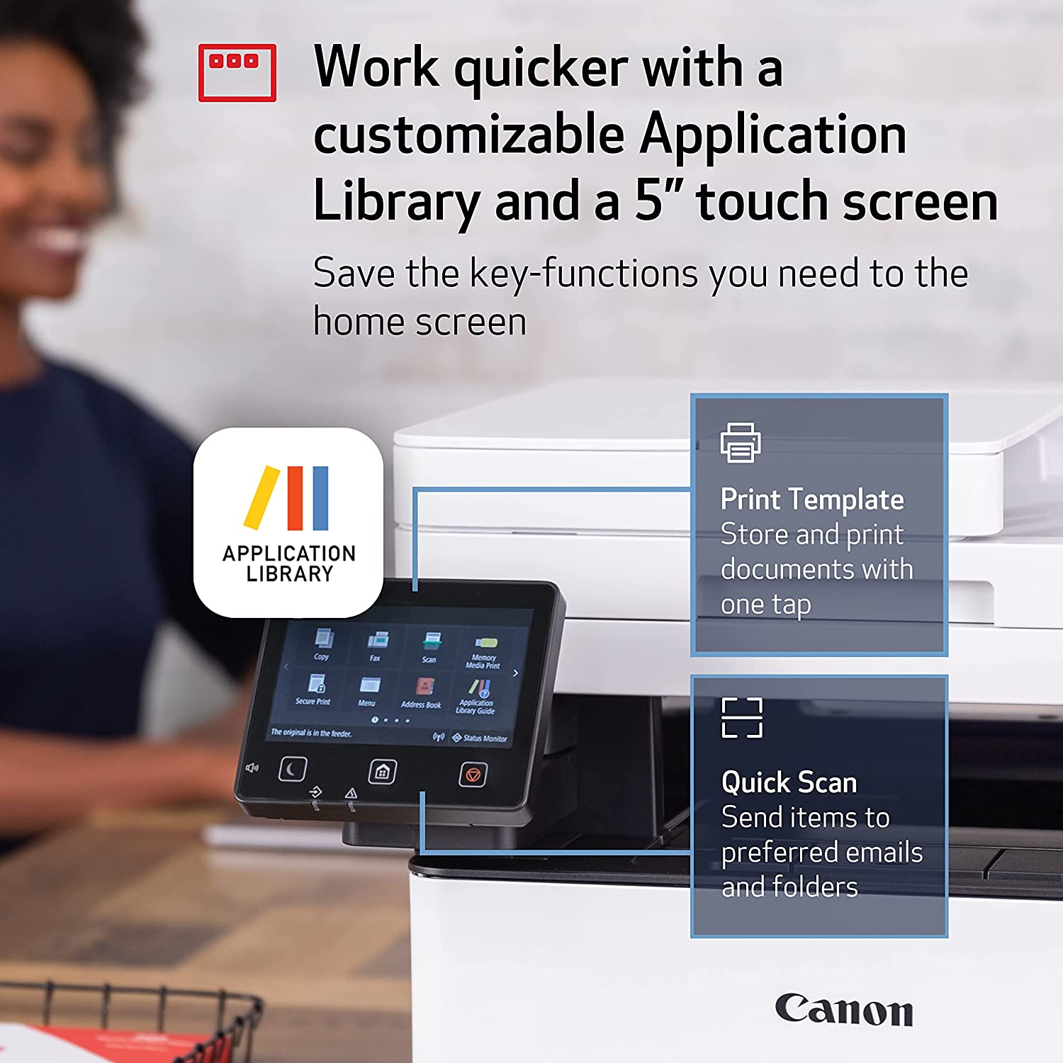 Designed for small and medium-size businesses, the Canon imageCLASS MF455dw model balances speedy performance, minimal maintenance, and the ability to add an extra paper tray. A 5" color touchscreen delivers an intuitive user experience and can be customized by a device administrator to help simplify many daily tasks.