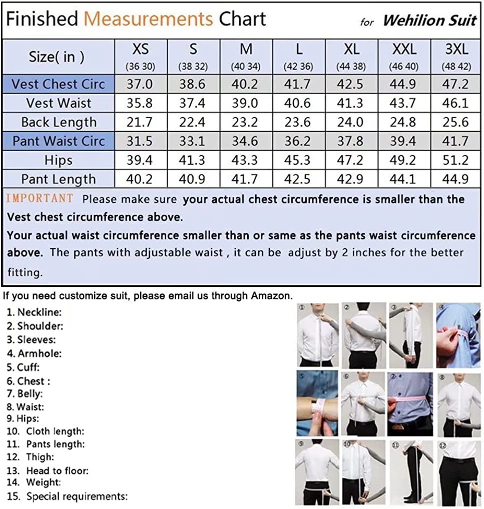 1.please choose right size before order it.if these sizes can not fit you well,we can custom it for ypu for free,Please provide the following measurements to us for custom size. You can see our measurement method in the photo part.