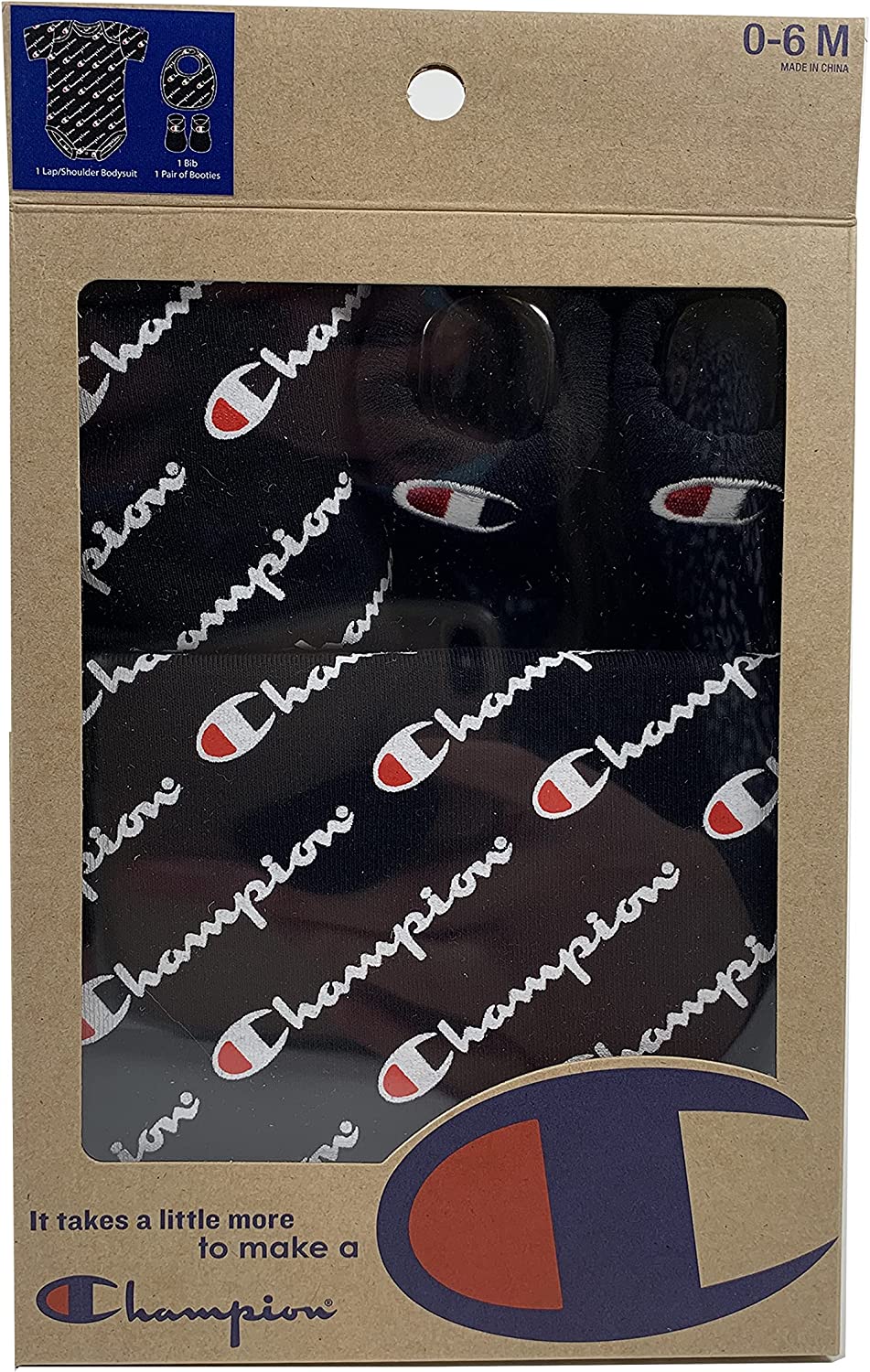 Champion baby-girls unisex-baby Infant 3-piece Box Set Includes Body Suit, Bib Or Hat and Booties