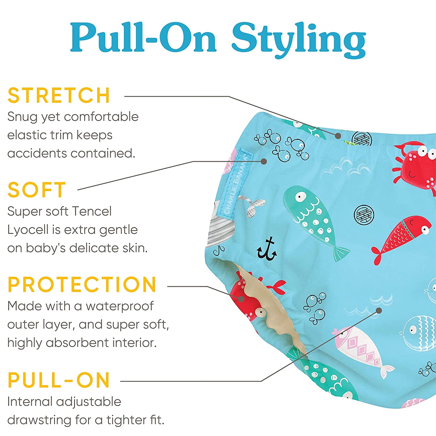 Signature Softness. All the Protection. None of the Waste. Our Reusable Swim Diapers come with Charlie Banana's 'Signature' softness, deliver a snug fit, are gentle on your baby's delicate skin, and help care for our planet. All Charlie Banana products are Climate Neutral Certified*, and we are proud members of 1% For The Planet**. All of our swim diapers are expertly designed to minimize accidents at the beach or in the pool. We proudly support the US Swim School Association. What’s in the box - 1 Reusable Swim Diaper with drawstring, waterproof outer, and soft Tencel lyocell inner lining. *Climate Neutral Business as of 2019. **Member of 1% For The Planet, 2019.