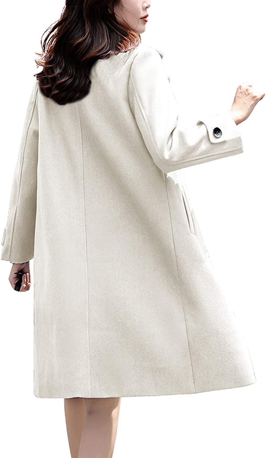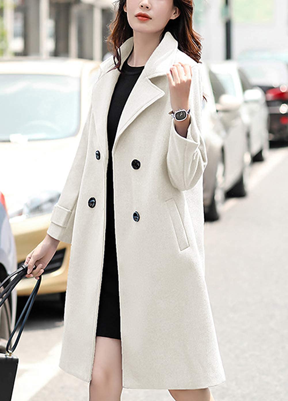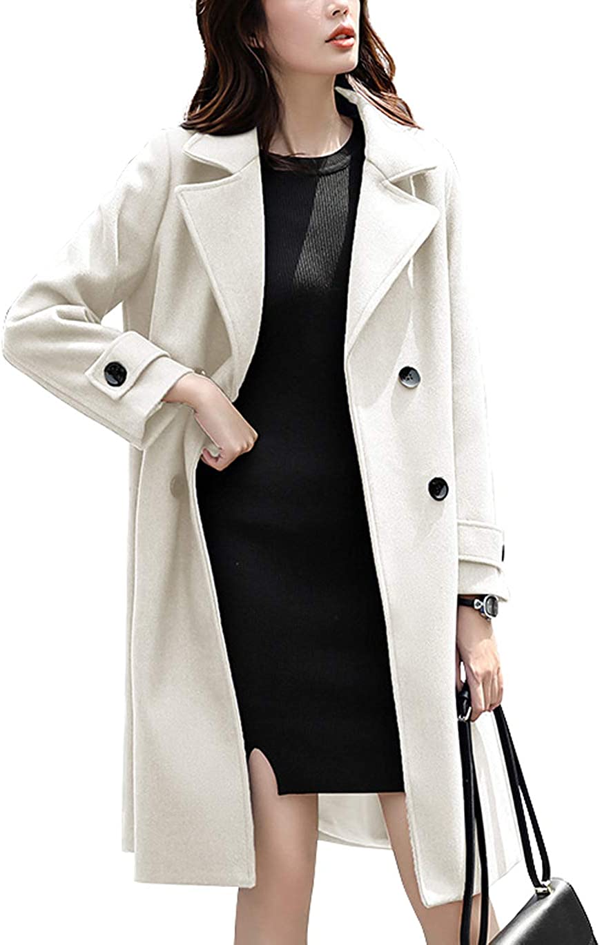 chouyatou Women's Essential Elegant Wear Double Breasted Mid Long Wool Pea Coat