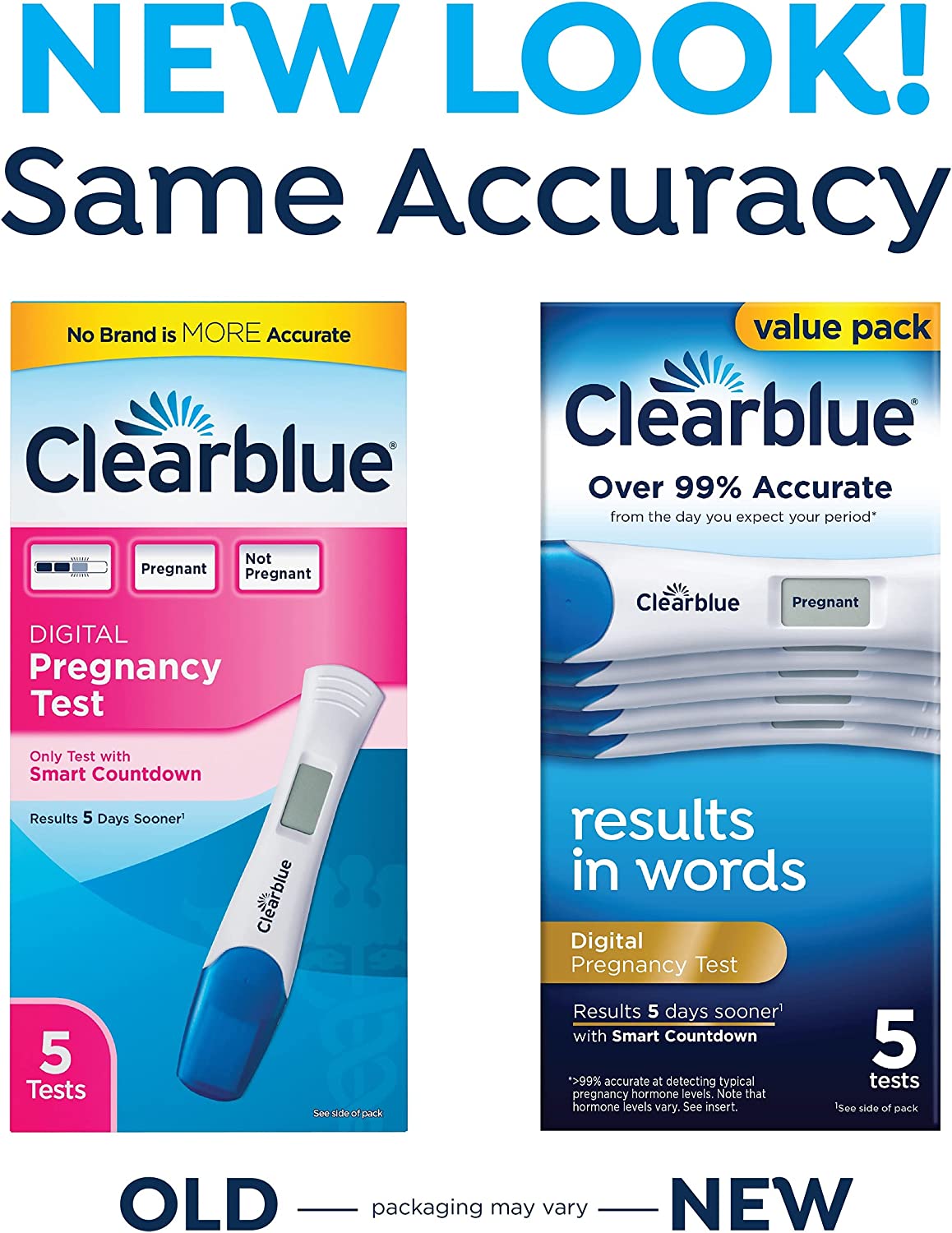 The Clearblue Digital Pregnancy Test with Smart Countdown (Prueba de embarazo Digital Clearblue con cuenta regresiva inteligente) is the only test that has a unique progress indicator that counts down to the result and gives you confidence every step of the way until your result is digitally displayed in words. The Clearblue Digital Pregnancy Test with Smart Countdown with its wide tip makes it easy to take the test accurately. The unique Floodguard Technology helps reduce the #1 reported cause of user error by over 70%(4) by keeping excess urine from flooding the test strip. The Clearblue Digital Pregnancy Test with Smart Countdown gives you accuracy and reassurance while you wait for your result.