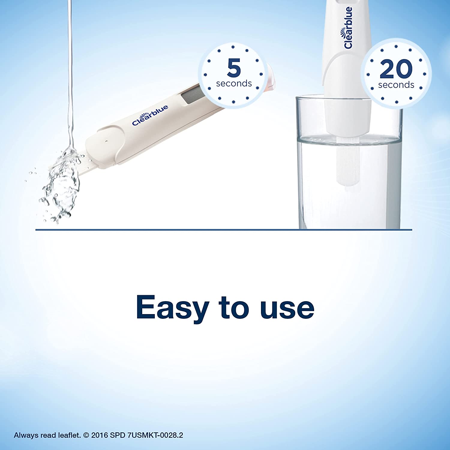 The Clearblue Digital Pregnancy Test with Smart Countdown (Prueba de embarazo Digital Clearblue con cuenta regresiva inteligente) is the only test that has a unique progress indicator that counts down to the result and gives you confidence every step of the way until your result is digitally displayed in words. The Clearblue Digital Pregnancy Test with Smart Countdown with its wide tip makes it easy to take the test accurately. The unique Floodguard Technology helps reduce the #1 reported cause of user error by over 70%(4) by keeping excess urine from flooding the test strip. The Clearblue Digital Pregnancy Test with Smart Countdown gives you accuracy and reassurance while you wait for your result.