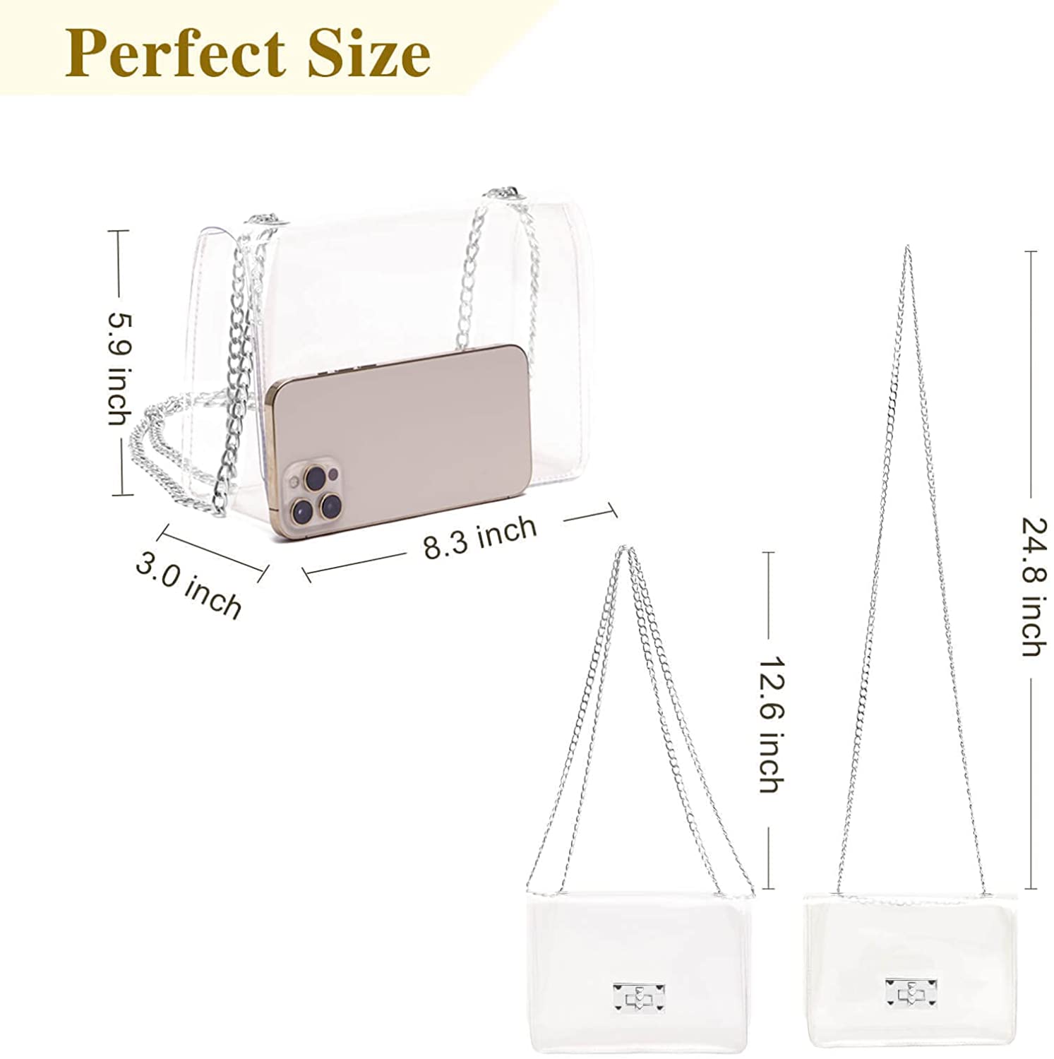 - Clear purse with fashion gold-tone or silver-tone hardware, stylish and trendy
