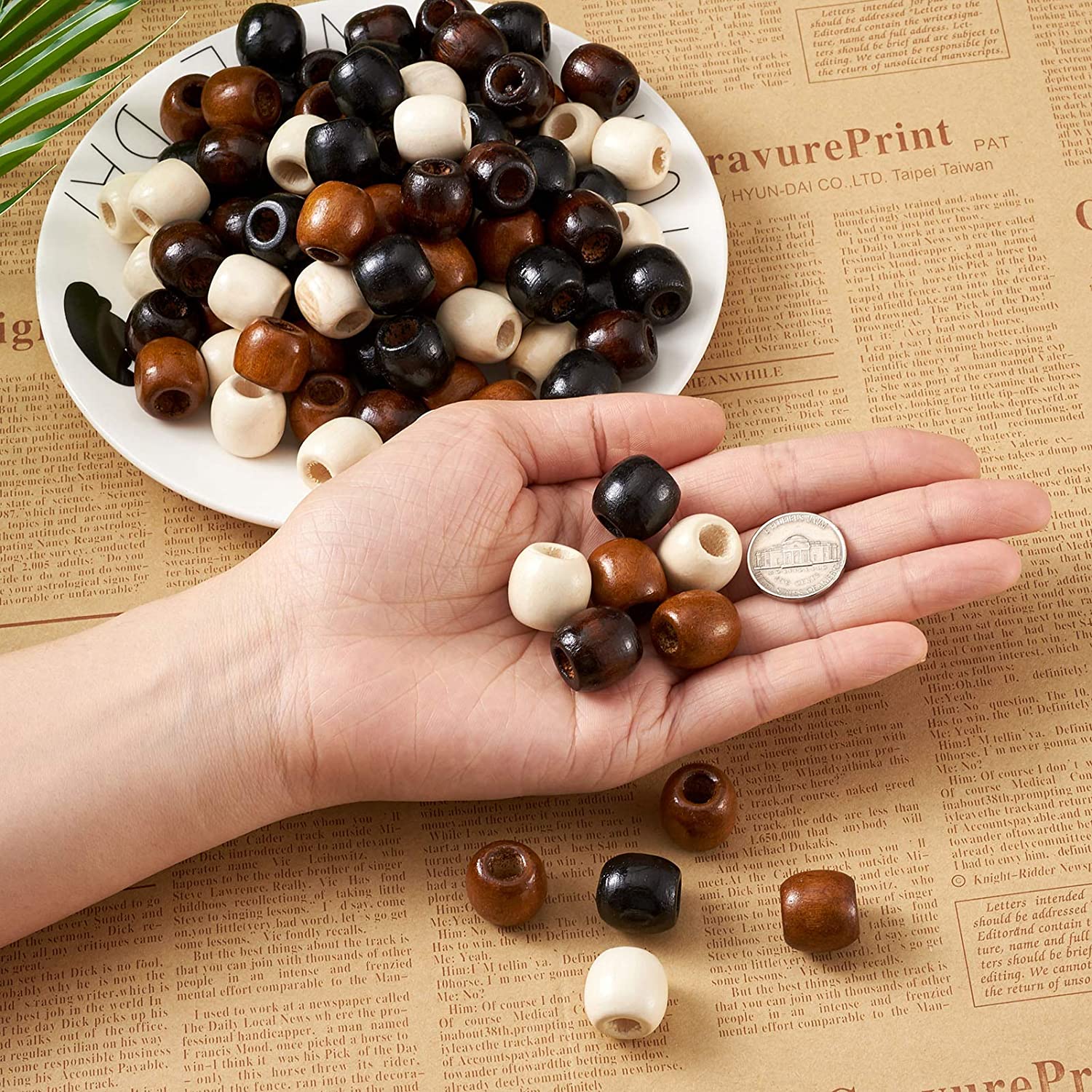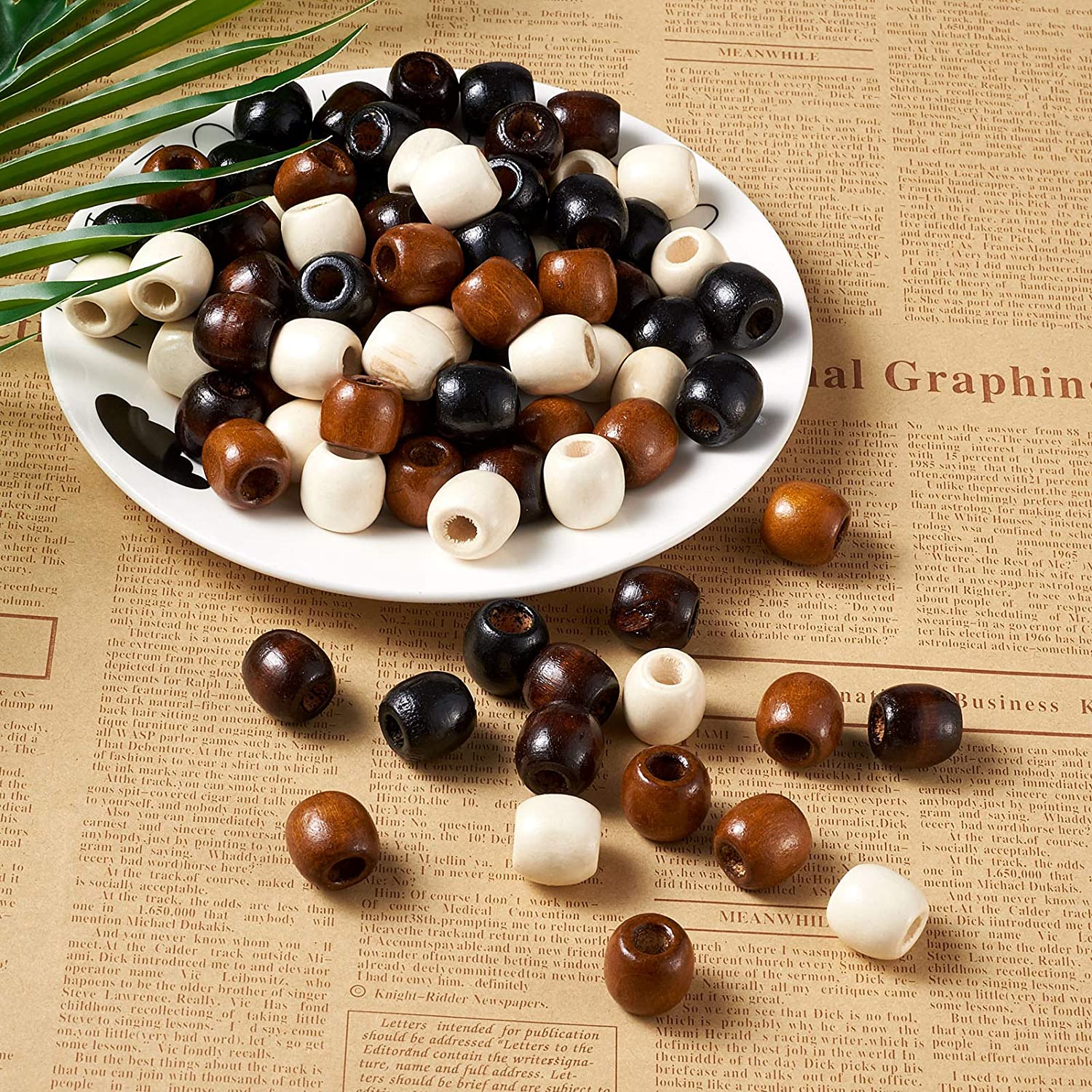 Craftdady 200Pcs Large Hole Barrel Wood European Loose Beads 4 Colors Natural Wooden Dreadlock Hair Braid Beads 16x16-17mm for Macrame Rosary Bracelet Jewelry Craft Making Hole: 8mm