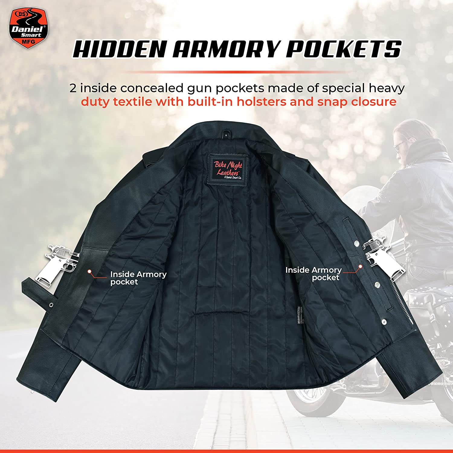 Daniel Smart Classic Men’s Leather Jacket - Economy Grade Cowhide Motorcycle Leather Jacket with Plain Sides & Armory Pockets