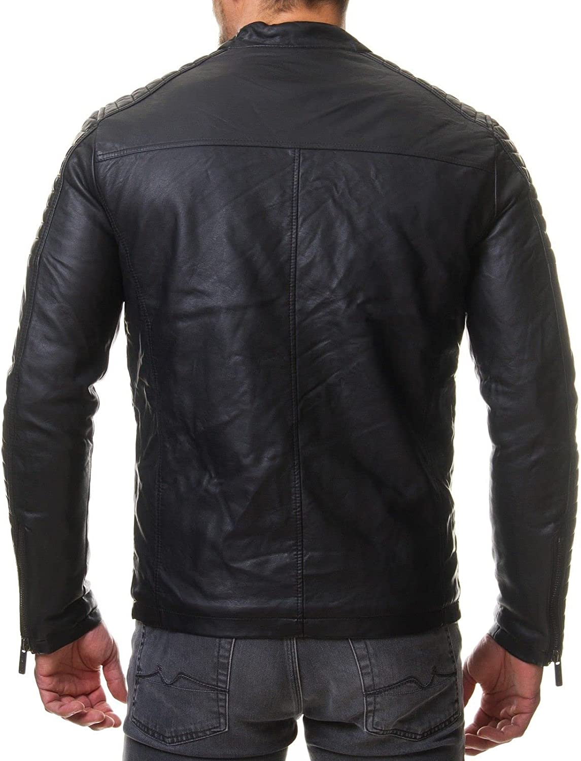 DECIMAL Men's Black REAL Lambskin Leather Biker Jacket VINTAGE GENUINE MOTORCYCLE JACKETS FOR MEN