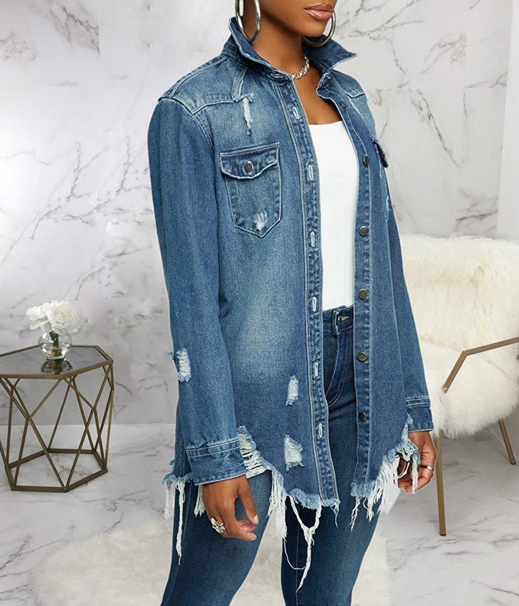 Denim Jacket for Women Winter Long Sleeve Classic Distressed Butterfly Jean Trucker Jackets