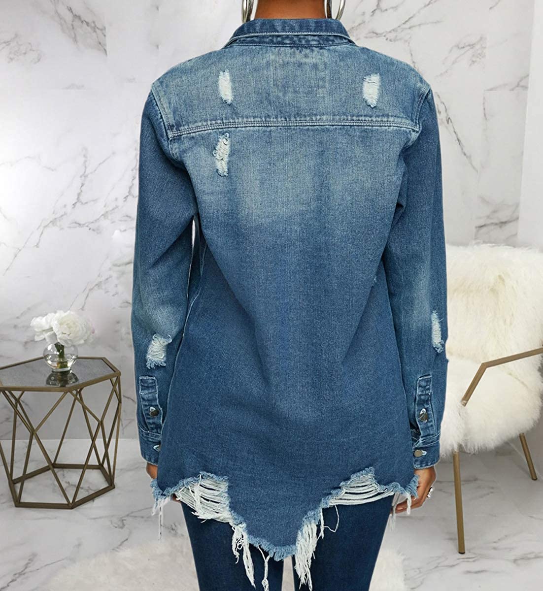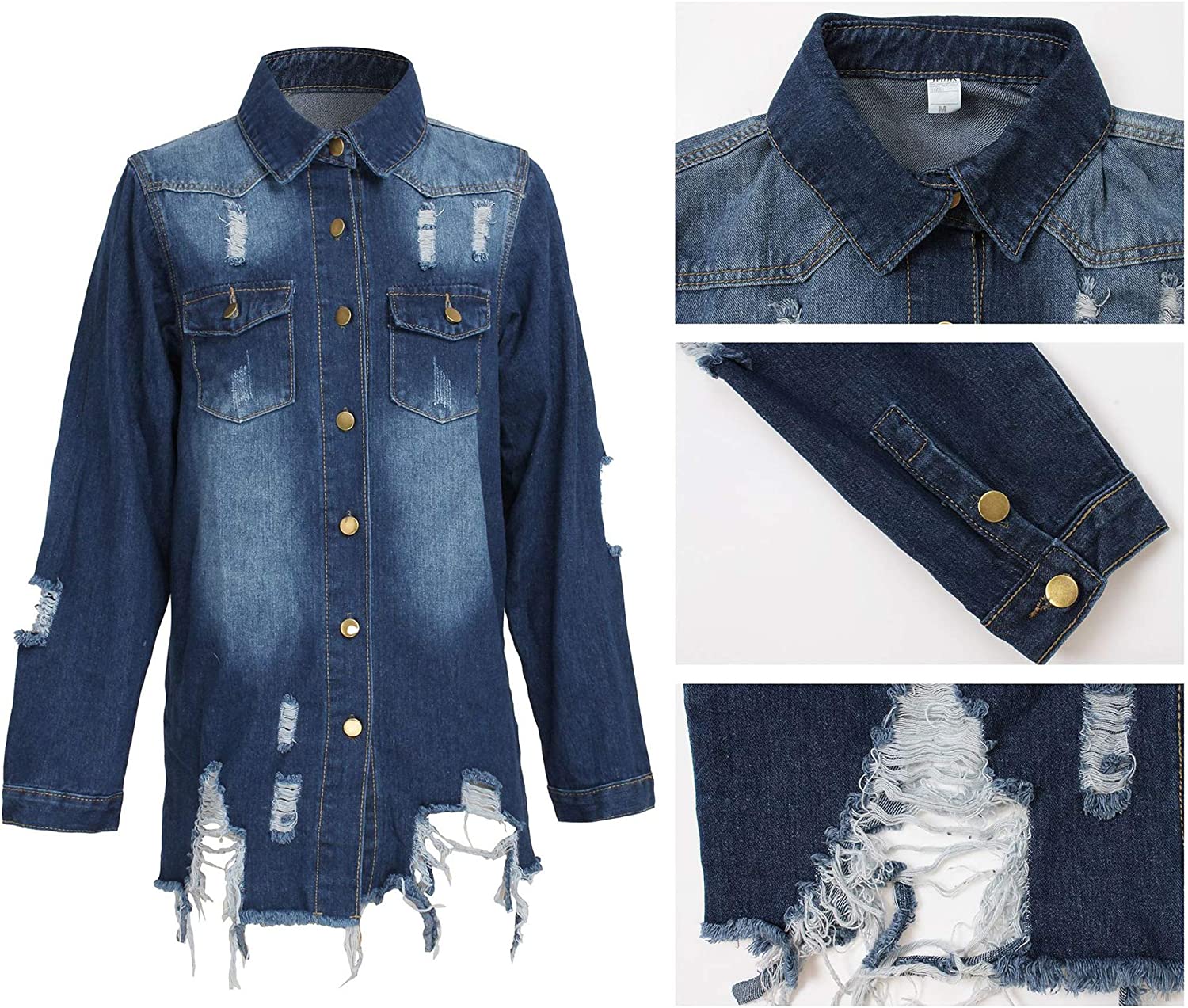 Denim Jacket for Women Winter Long Sleeve Classic Distressed Butterfly Jean Trucker Jackets