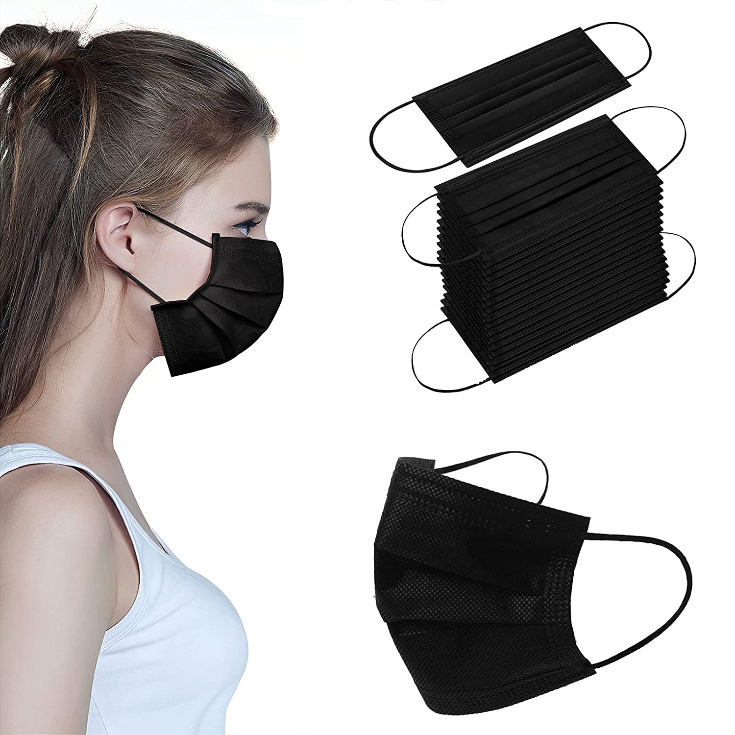 Disposable Face Masks 100PCS Black Face Mask 3 Layer Protection Face Mask with Adjustable Ear Loops
