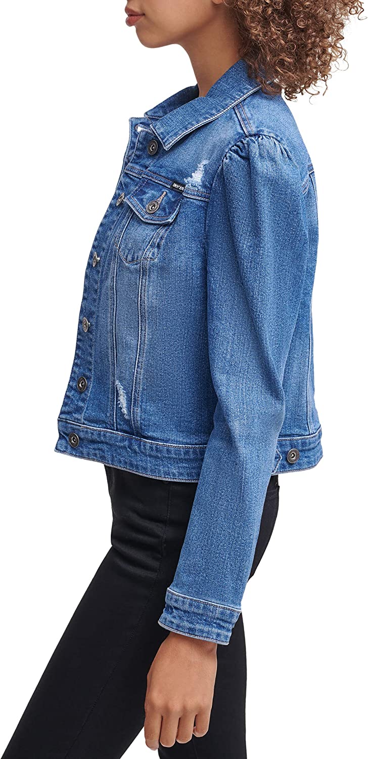 DKNY Women's Puff Sleeve Denim Trucker Jacket