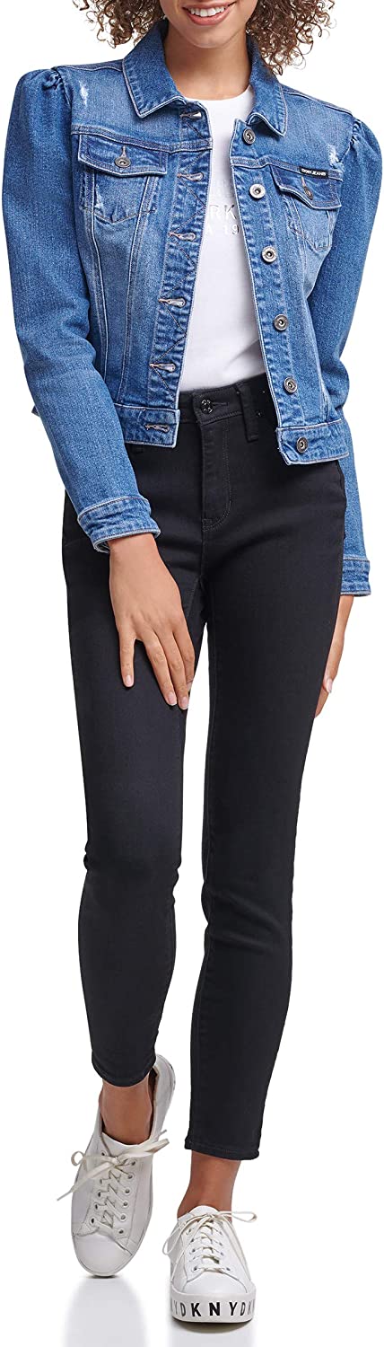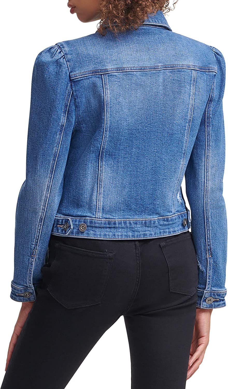 DKNY Women's Puff Sleeve Denim Trucker Jacket