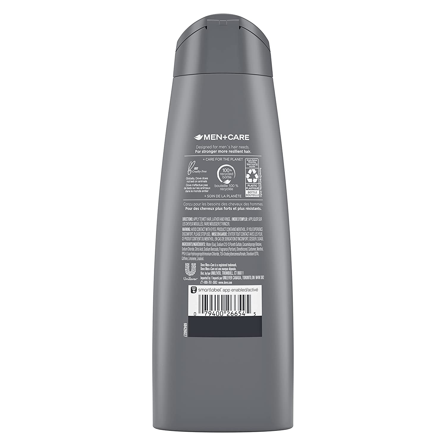 Dove Men+Care Fortifying 2 in 1 Shampoo and Conditioner makes hair stronger and more resilient so that men can pursue their active lifestyles. This shampoo for men is designed specifically for those that want fresh clean hair and have a concern about hair loss. It deeply cleans and invigorates hair with a refreshing effect, and is infused with caffeine + menthol. It helps strengthen hair, leaving it visibly healthy, thicker and resilient, with a dual 2-in-1 formula that functions as a shampoo and conditioner so that it cleanses and conditions hair simultaneously. This 2-in-1 consolidates your shower routine to keep up with men’s active lifestyles and everyday activities that can weaken hair, making it more prone to hair fall from breakage and cause concern about hair loss. This shampoo and conditioner system is available in the following sizes: 12 oz, 25.4 oz, 40 oz, and 3 oz. Great hair doesn’t stop in the shower! Complete your hair care regimen after using 2 in 1 shampoo and get great more resilient hair with the Dove Men + Care Sculpting Paste for a natural look, Defining Pomade for a sleek and polished finish, or Control Gel for all-day hold. Use it with the entire line of Dove Men + Care products for the perfect grooming regimen, such as Dove Men + Care Extra Fresh Body Wash and Dove Men + Care Dry Spray Antiperspirant.