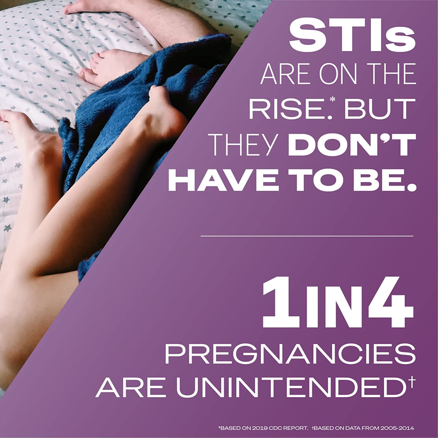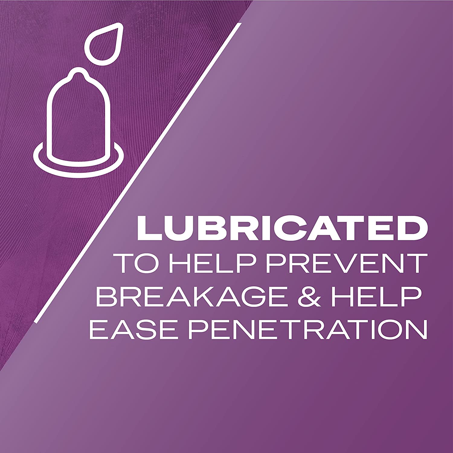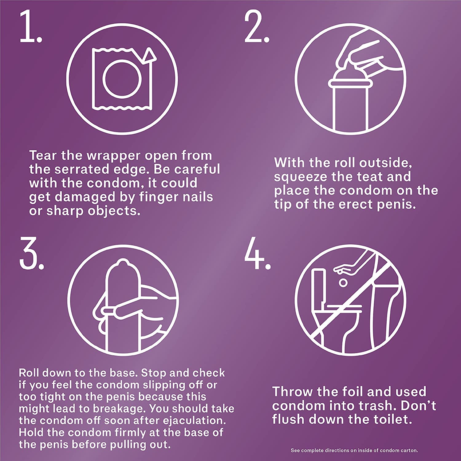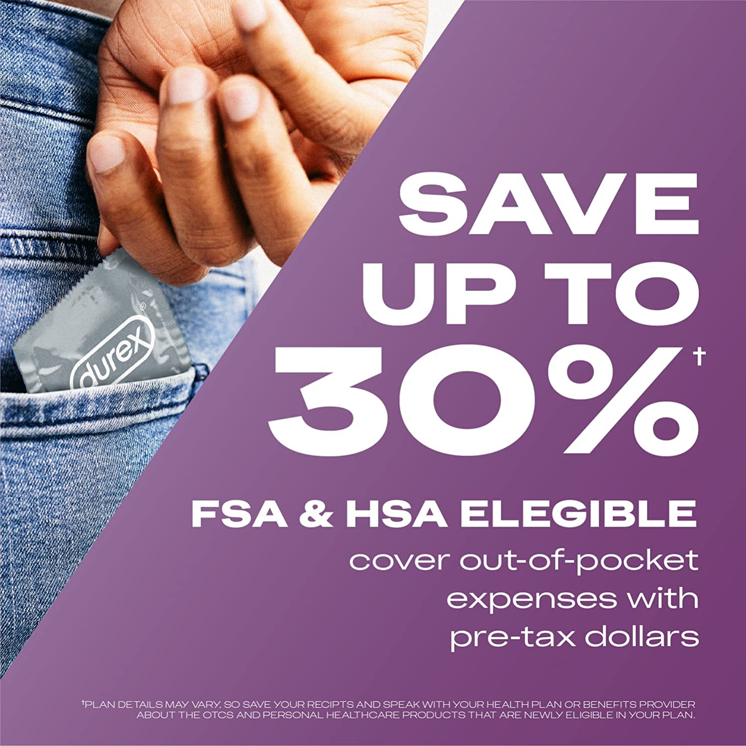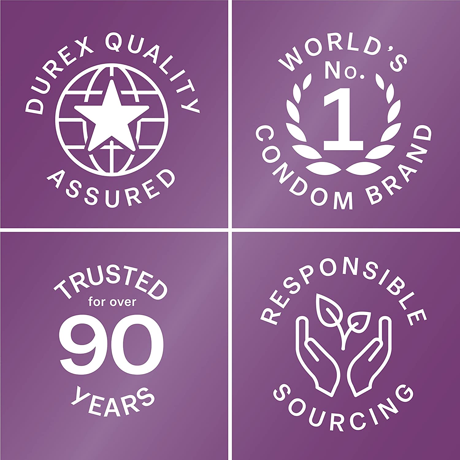 Durex Pleasure Pack Assorted Condoms features 4 types of assorted lubricated, natural latex male condoms including Extra Sensitive condoms & Performax Intense ribbed and dotted condoms. Durex Performax Intense delay condoms for men are made with a desensitizing lubricant to help slow him down and last longer, Benzocaine (5 percent). Durex Extra Sensitive ultra thin condoms with extra lubrication give you the intimate feeling of skin on skin contact. REGULAR FIT: Our standard girth, regular fit condoms are designed for a close and comfortable fit, with a nominal width of 54mm. FSA (Flexible Spending Account) and HSA (Health Savings Account) eligible. Durex is the world's #1 condom brand* trusted over 80 years. Each Durex condom for men is 100 percent electronically tested for strength, flexibility and reliability and features a pleasant scent. Our products are delivered in discreet packaging with no indication of parcel contents. For maximum benefit, carefully follow the condom instructions on the inner side of this package. It helps provide protection against pregnancy, HIV/AIDS and other sexually transmitted infections (STIs). *Based on global Nielsen unit sales data through September 2020.