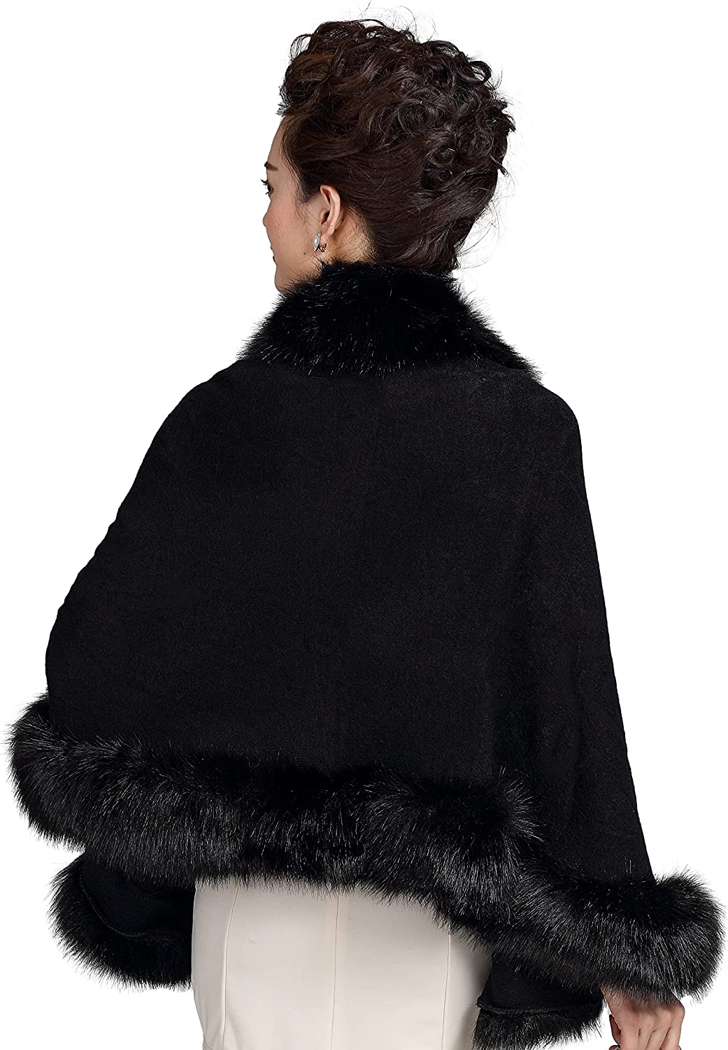 Elfjoy Luxury Bridal Faux Fur Cashmere Wool Shawl Cloak Cape Wedding Dress Party Coat for Winter
