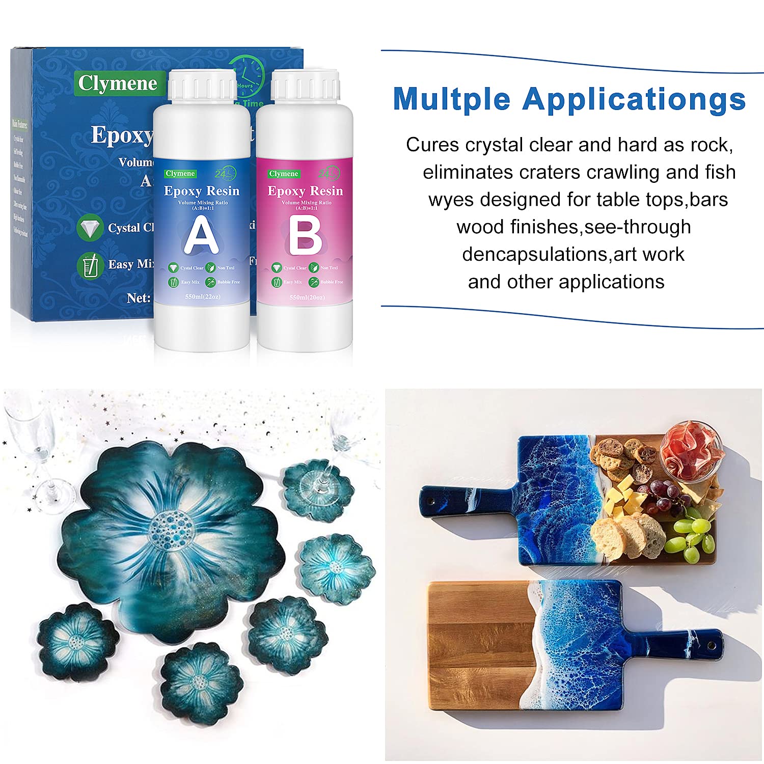 Epoxy Resin Kit, 42 oz / 1100 ml Crystal Clear Epoxy Resin for Art, Craft, Coating, Casting and Jewelry Making, Come with 4 Graduated Cups, 4 Stir Sticks and 10 Pairs Gloves