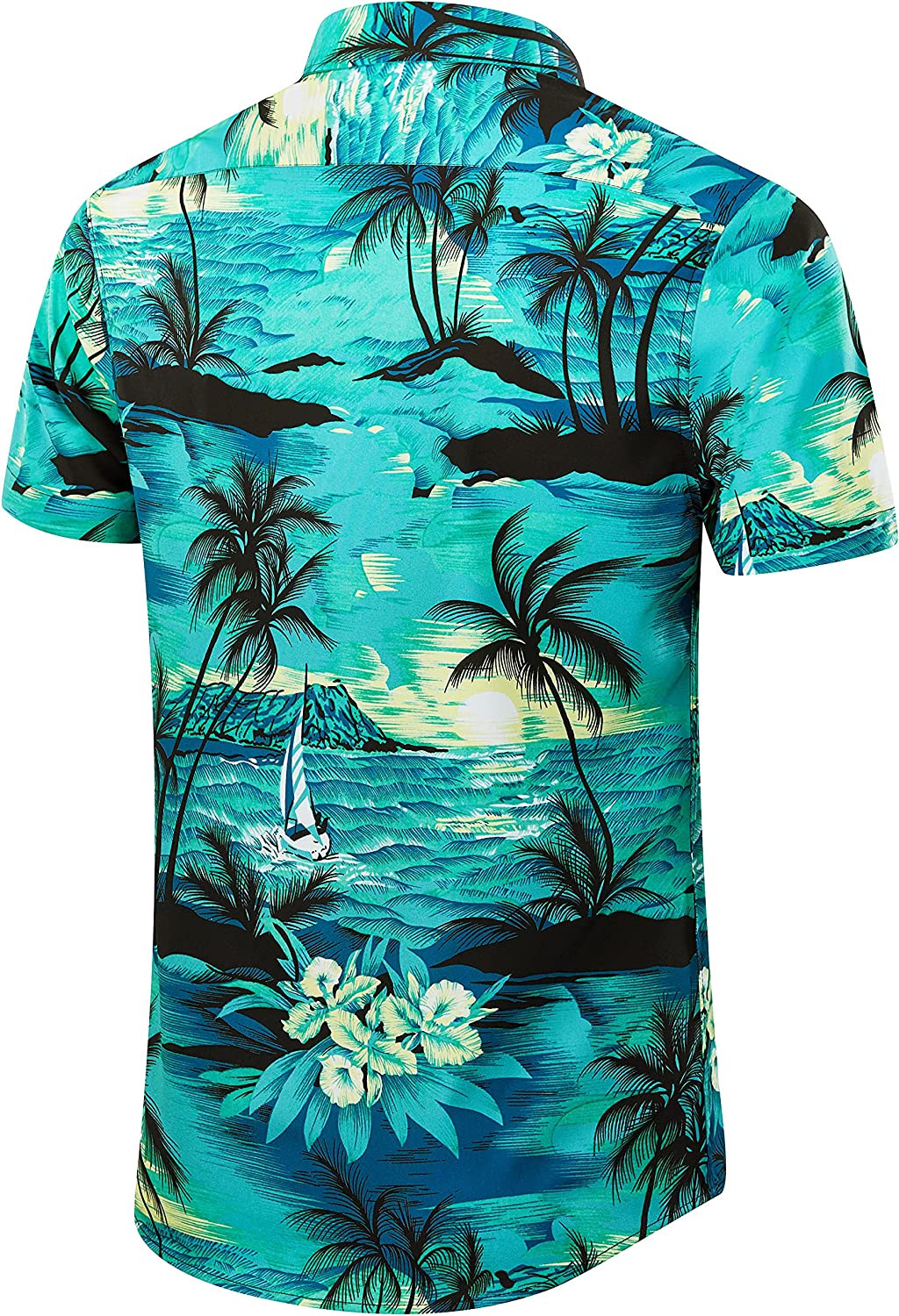 EUOW Men's Hawaiian Shirt Short Sleeves Printed Button Down Summer Beach Dress Shirts