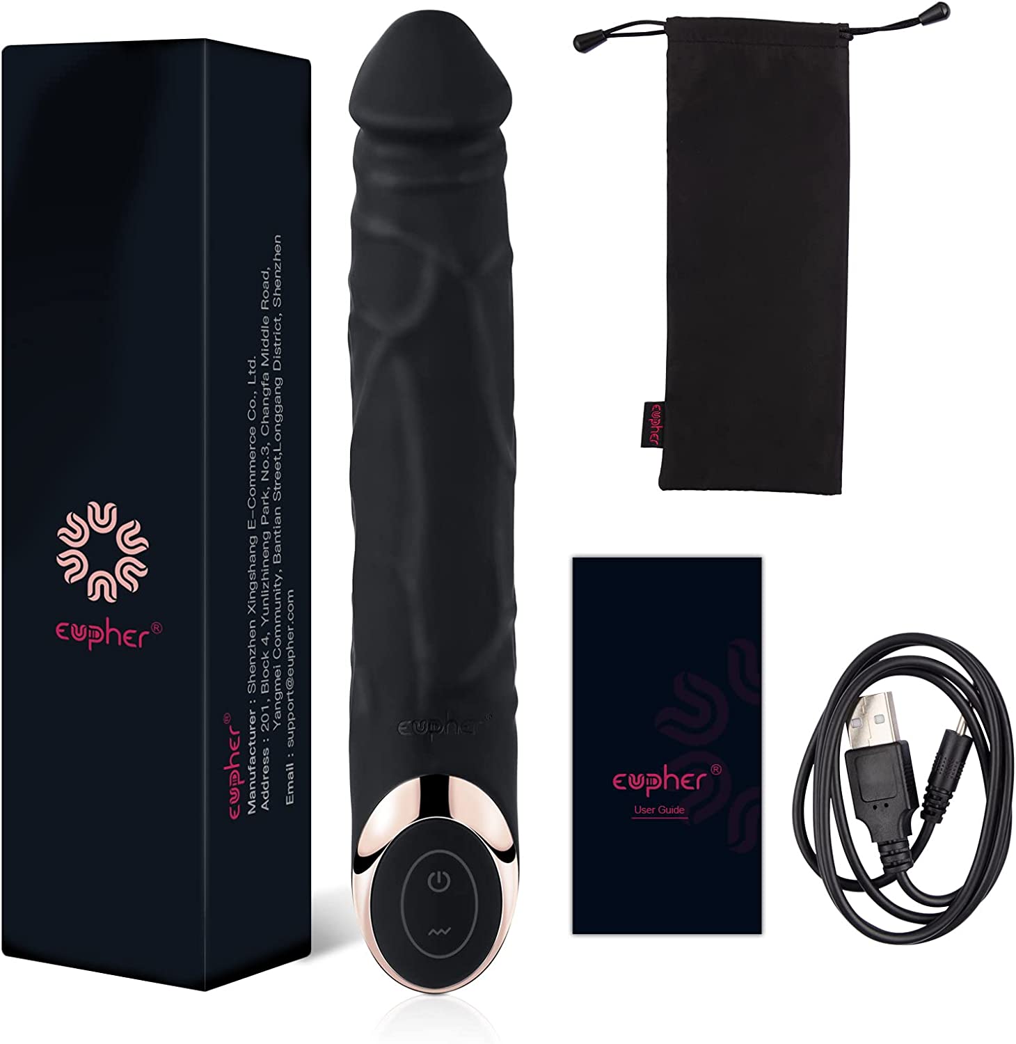 Eupher 8.5 Inch Rechargeable G Spot Dildo Vibrator,Realistic Dildo Vibrating Machine with 10 Vibrations,Quiet & Bendable Vaginal Clitoris Anal Stimulation Adult Sex Toys for Women or Couple (Black)