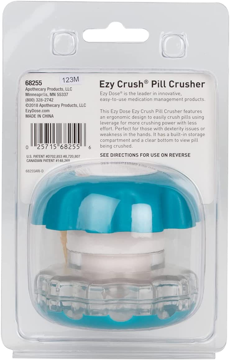 This Ezy Dose Ezy Crush Pill Crusher features an ergonomic design to easily crush pills using leverage for more crushing power with less effort. Perfect for those with dexterity issues or weakness in the hands. It has a built-in storage compartment and a clear bottom to view pill being crushed. Ezy Dose is the leader in innovative easy-to-use medication management products. From pill cutters, pill crushers and a full line of easy fill products, to calibrated medicines spoons, portable pill containers and droppers. Ezy Dose products make living healthier simply easier. Works with the hardest and largest pills.