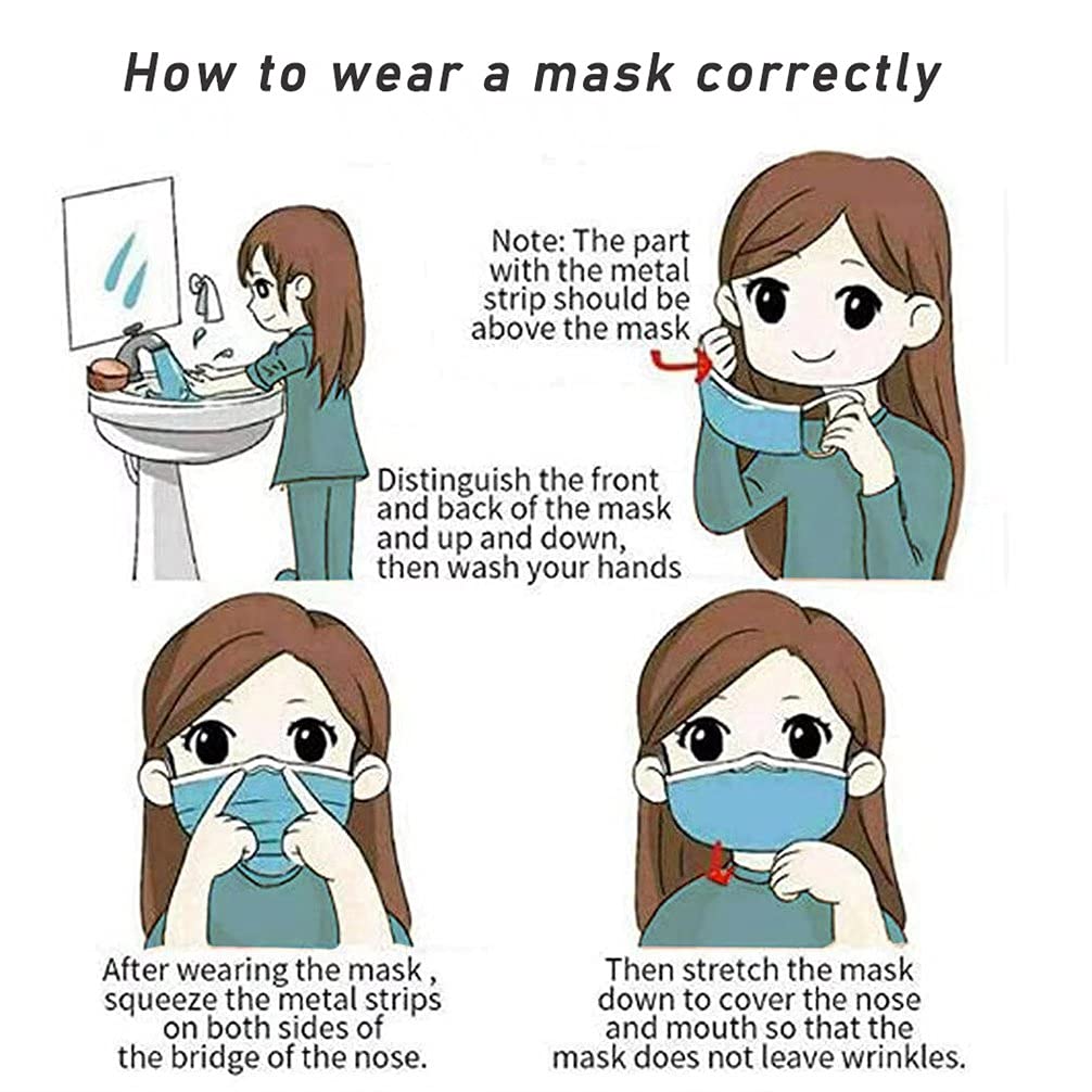 3) Mold the top metal strip to the bridge of the nose,then pull the bottom portion of the mask past your chin and secure the bottom metal strip.