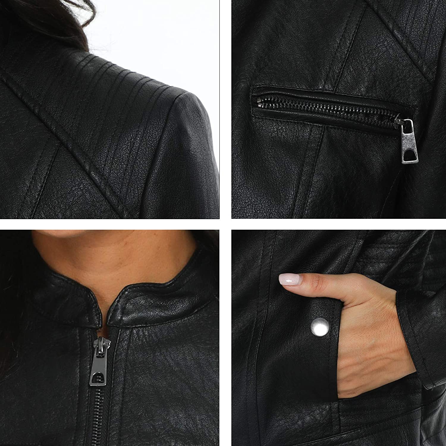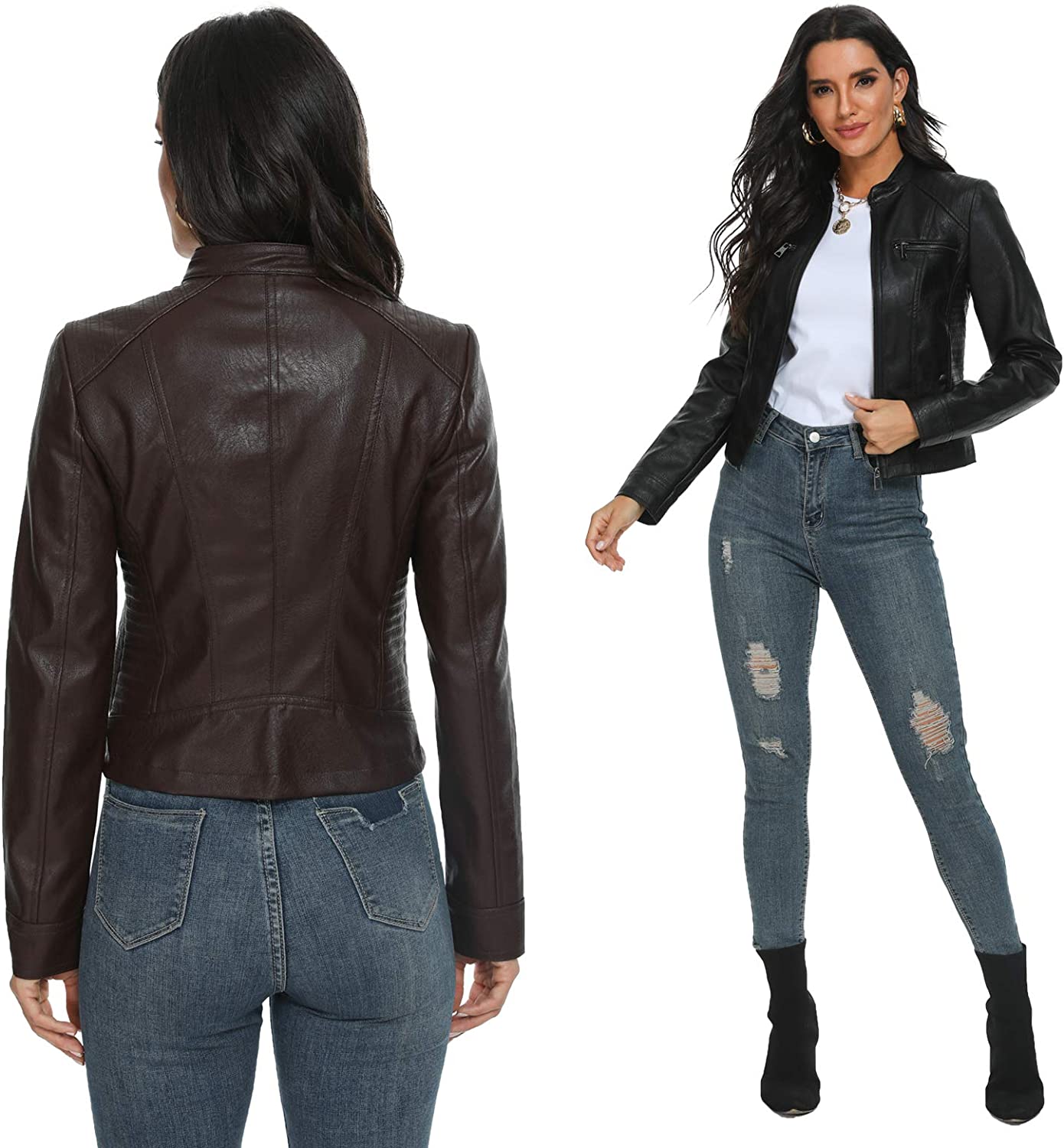 Fahsyee Women's Faux Leather Jackets, Zip Up Motorcycle Short PU Moto Biker Outwear Fitted Slim Coat