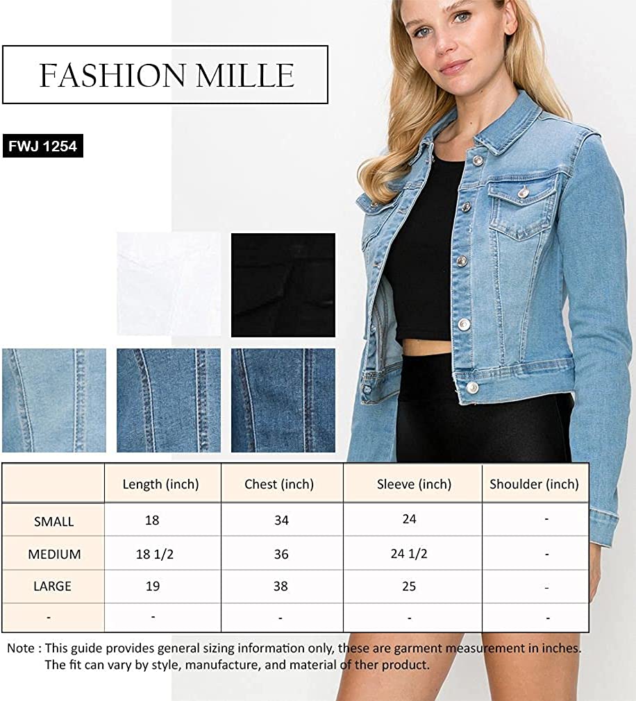 FashionMille Women Classic Casual Stretch Fit Denim Jean Jacket