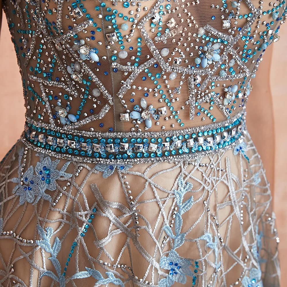 FFLJT Evening Dress,Backless Lace Long Evening Dress A-line Beadings Party Dress (Color : As Shown, Size : 6)