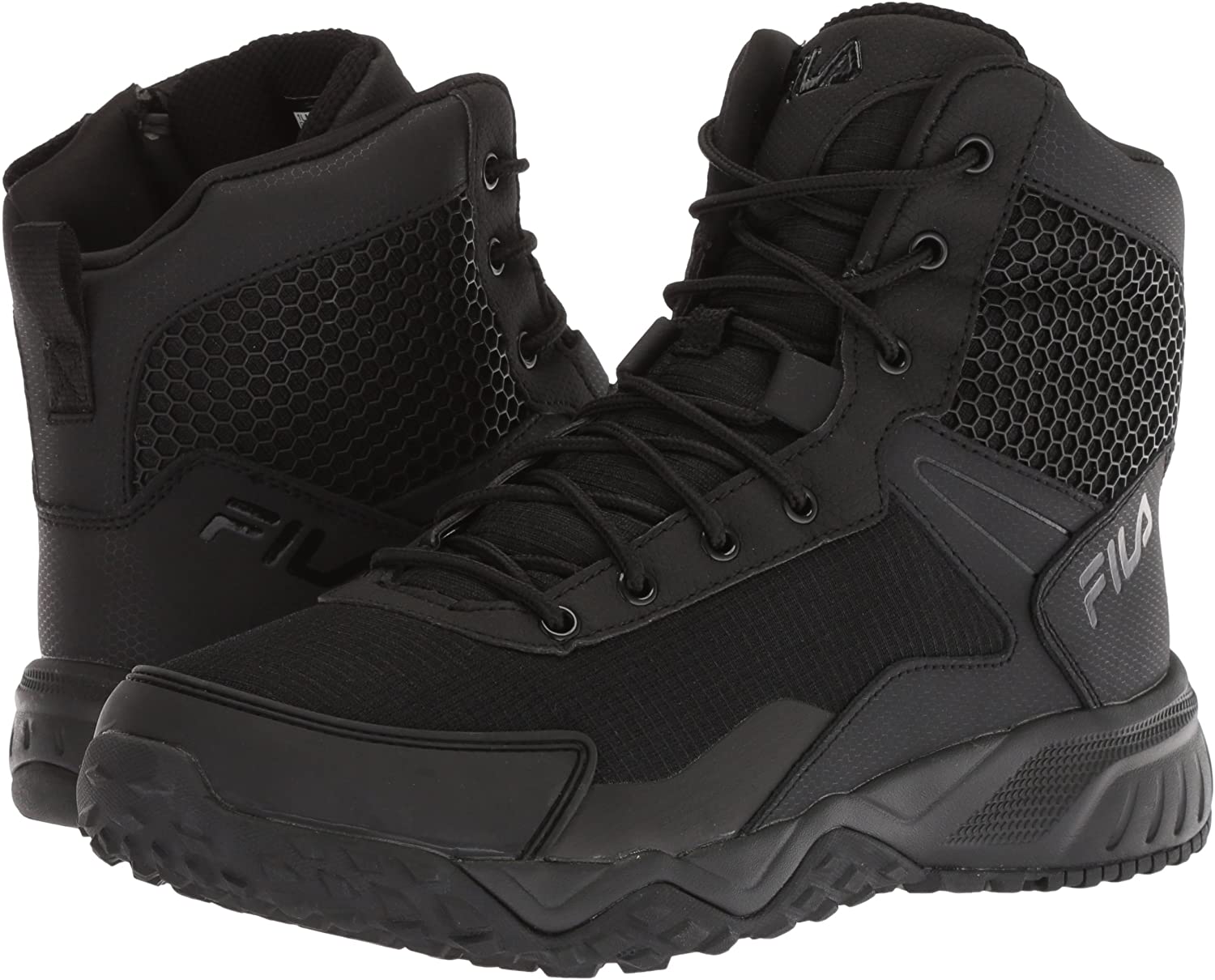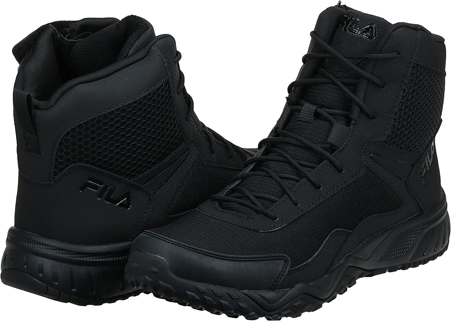 Feel comfortable without sacrificing performance and protection in your work day with the Fila Chastizer slip resistant high top work shoes. Where premium meets utility, the Chastizer work shoe is constructed from durable leather and mesh overlays to give you a dependable work shoe that meets your occupational needs. Our Fila footbed features a specially designed EVA sole for premier shock absorption and additional comfort with every step of your day. The Fila Stormer boasts a structured high top design – the perfect boot for tactical usage. Face your daily challenges with ease and support with built in perforated mesh for breathability and a lace up front closure for a secure fit. Our work shoes are designed to fulfill work in every industry. From military to tactical, to construction and industrial - when the work day gets long, Fila is there with a shoe that defies expectations to deliver another level of performance and quality design.