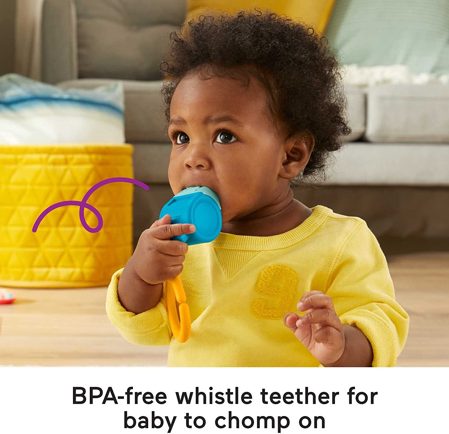 Call a fun-filled play for your little football fan with the Fisher-Price Tiny Touchdowns Gift Set. This set of 3 infant activity toys includes a crinkly fan finger, a whistle teether, and a soft, squishable football that jingles when fumbled. Baby will love exploring all of the fun textures and sounds, practicing their gross motor skills as they do!