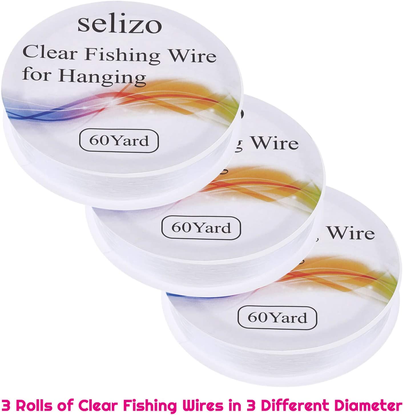 Selizo fishing wire set comes with 3 rolls of clear fishing line in 3 sizes, each roll 60 yards; Enough for your daily use in hanging, beading and crafts.