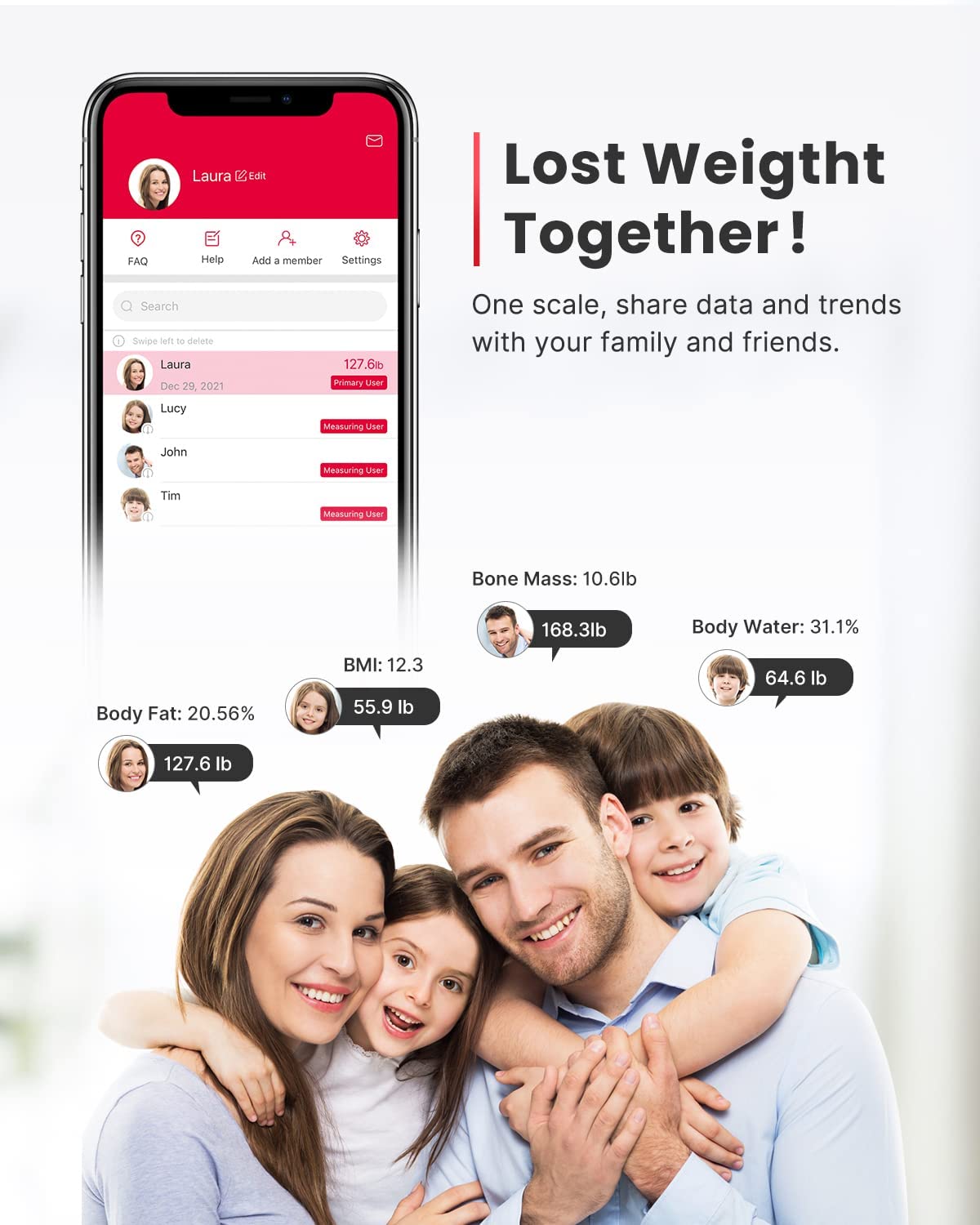 FITINDEX Bluetooth Body Fat Scale, Smart Wireless BMI Bathroom Weight Scale Body Composition Monitor Health Analyzer with Smartphone App for Body Weight, Fat, Water, BMI, BMR, Muscle Mass - White