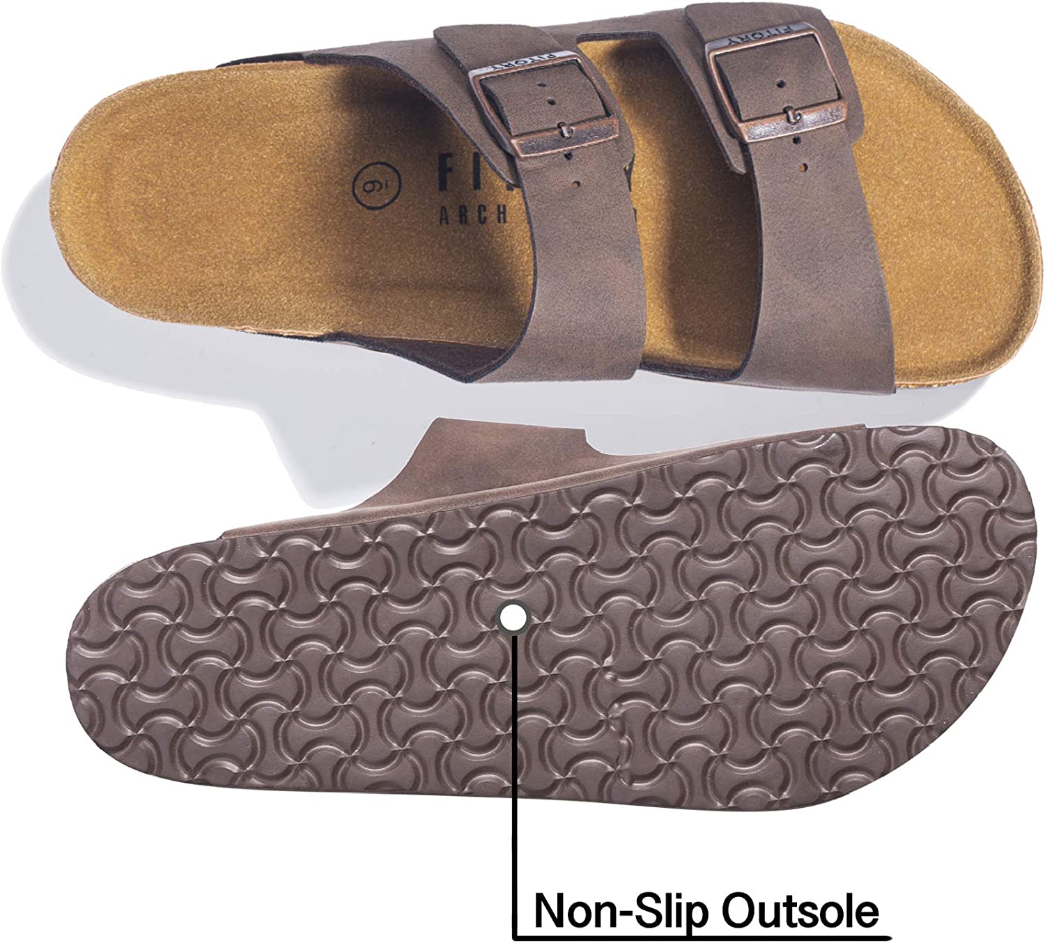 FITORY Mens Sandals, Arch Support Slides with Adjustable Buckle Straps and Cork Footbed Size 7-13