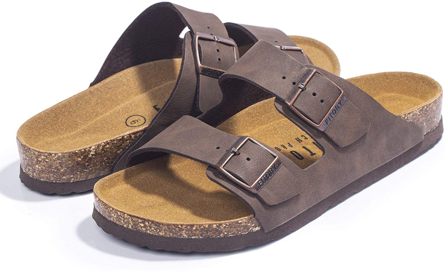 FITORY Mens Sandals, Arch Support Slides with Adjustable Buckle Straps and Cork Footbed Size 7-13