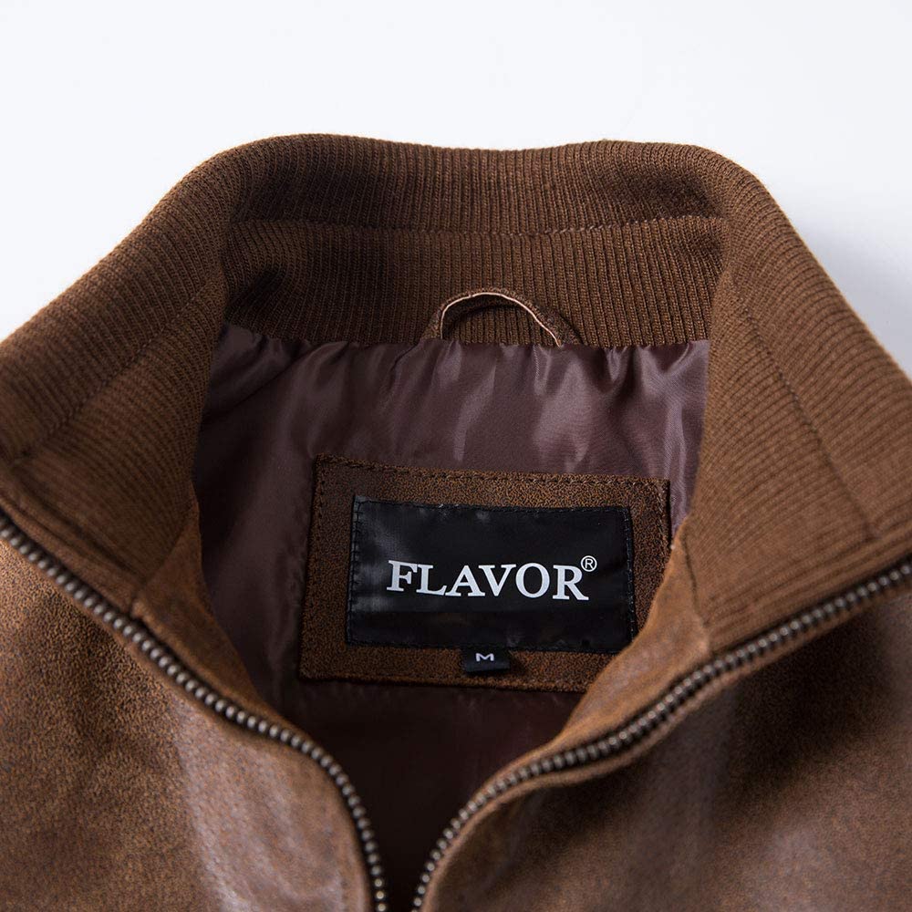 FLAVOR Men's Real Leather Bomber Casual Jacket