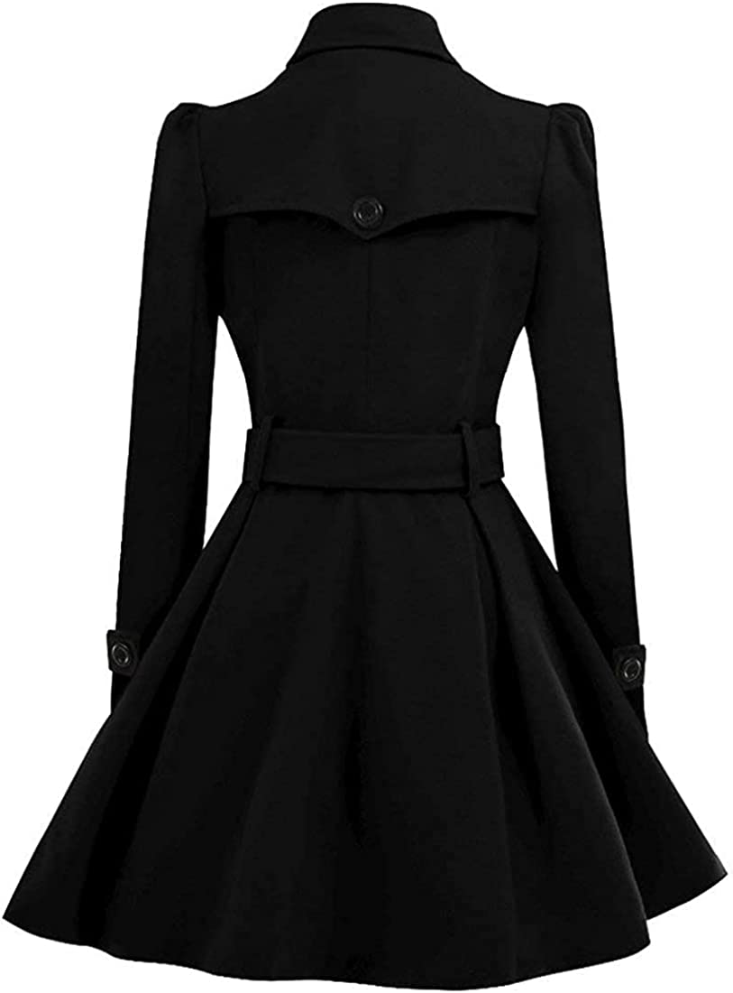 ForeMode Women Swing Double Breasted Wool Pea Coat with Belt Buckle Spring Mid-Long Long Sleeve Lapel Dresses Outwear
