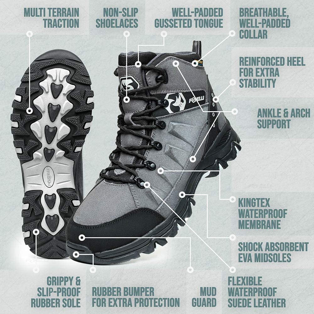 Whether your day takes you on a challenging hike or a casual stroll around the neighborhood – Foxelli hiking boots for men will ensure that you're getting the most out of the experience! Designed for rugged use, yet stylish enough to serve as every day footwear, these trekking shoes come packed with many features that make them stand out from the crowd for all the right reasons.