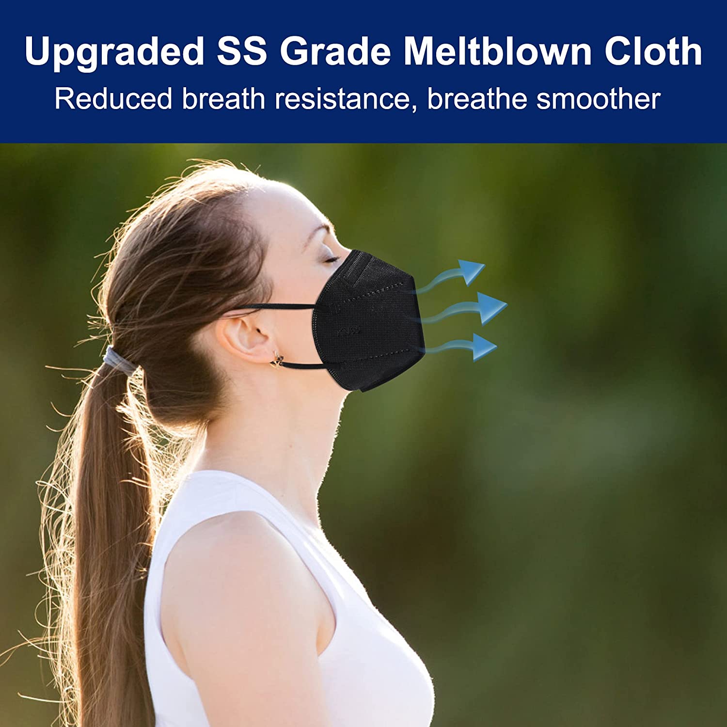 Funight KN95 Face Masks 25 Pack 5-Ply Breathable Filter Disposable Face Masks Black