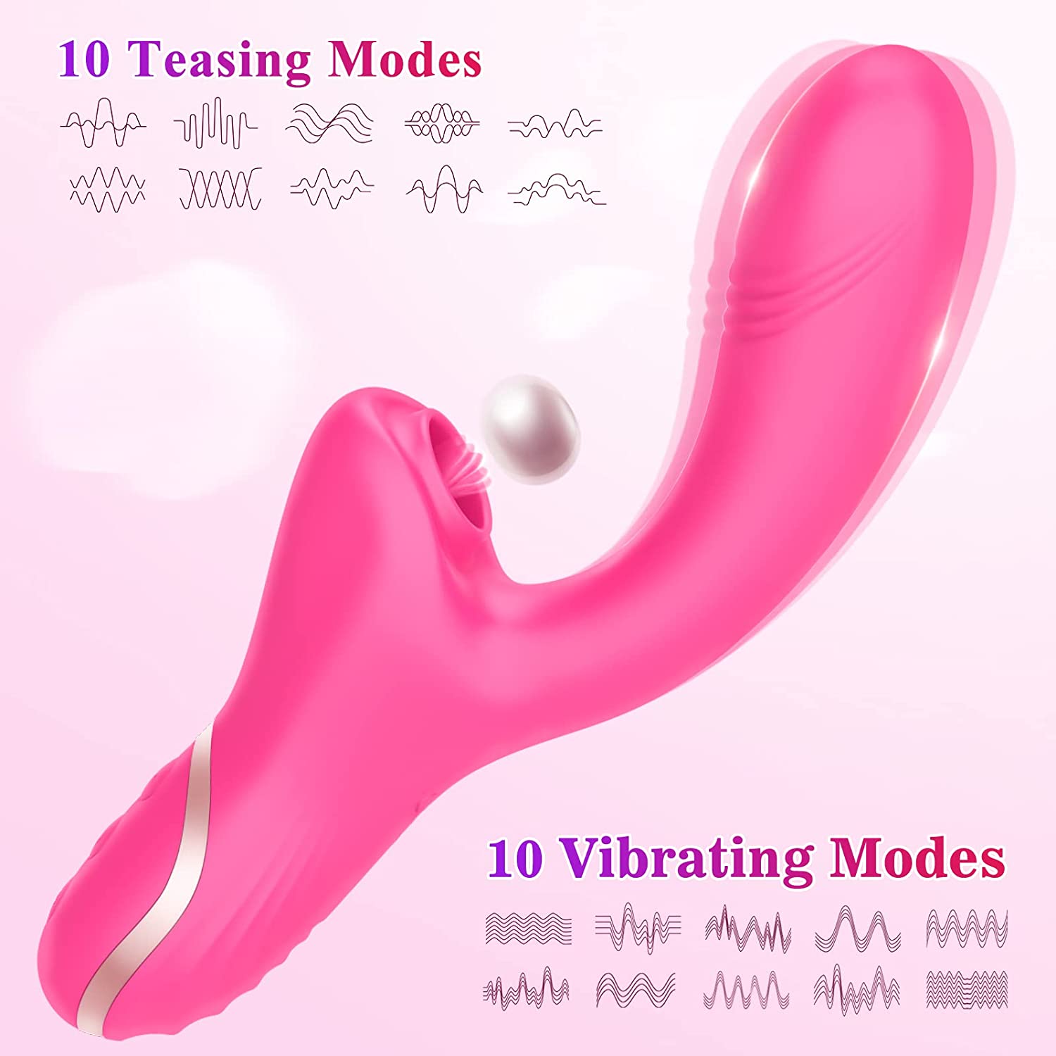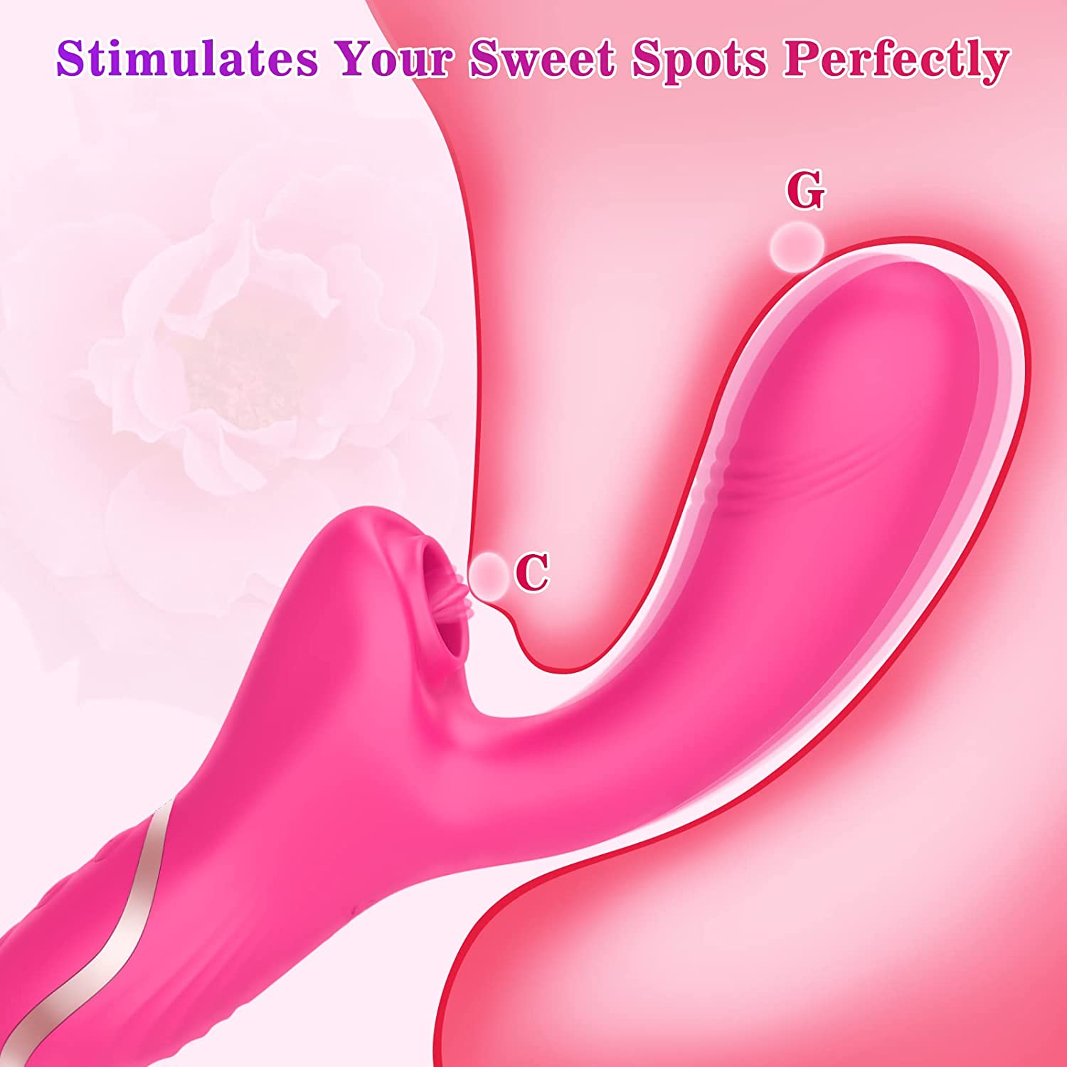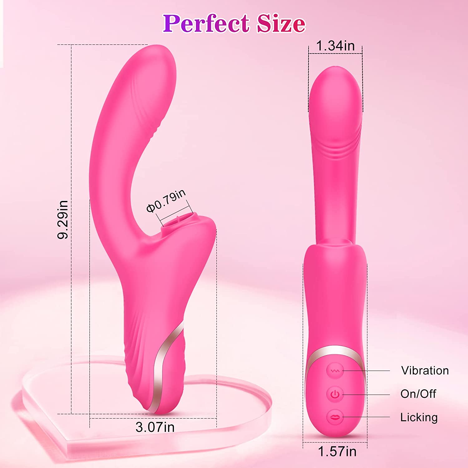 G Spot Clitoral Vibrator with 10 Licking & Vibrating Modes, Banenu Rose Toy Dual Stimulation Tongue Licking Dildo Vibrator Clitoris Anal Massager Rabbit Vibrator, Adult Sex Toy for Women Couple