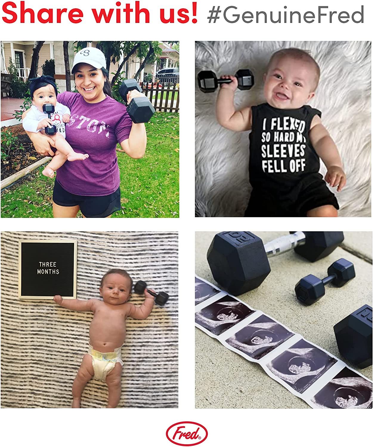Buff Baby turns Junior into a bench-pressin’ body-builder! Your little one's curiosity will be piqued by the gentle rattle sound and natural hand-grips, while your sense of irony will be satisfied by watching Junior do 3 sets of 10. Sowork it, baby! 5 1/2" X 2", No phthalates, no BPA, safe for baby. Clear gift box packaging. Design by Diana change