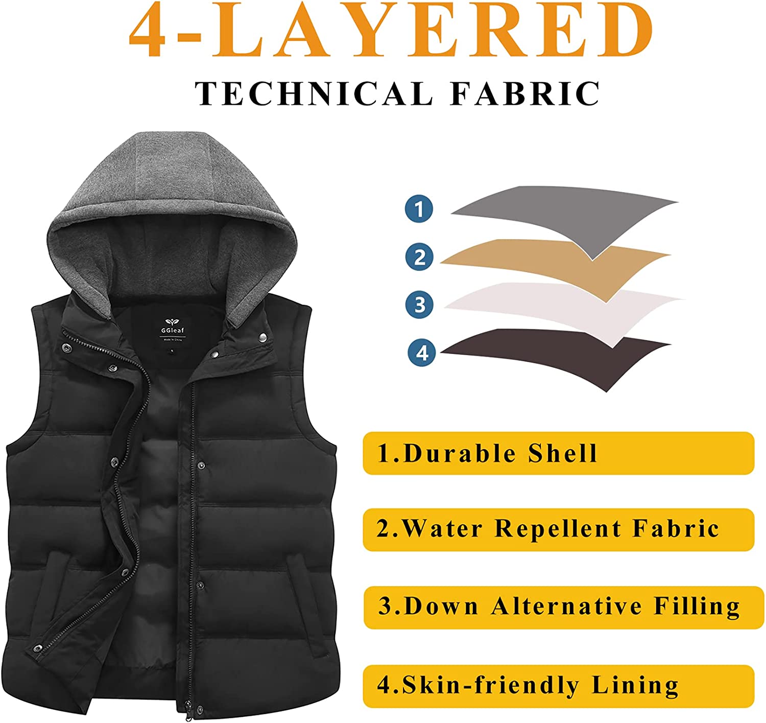 GGleaf Women's Warm Winter Hooded Vest Padded Puffer Vest Outerwear Sleeveless Vest