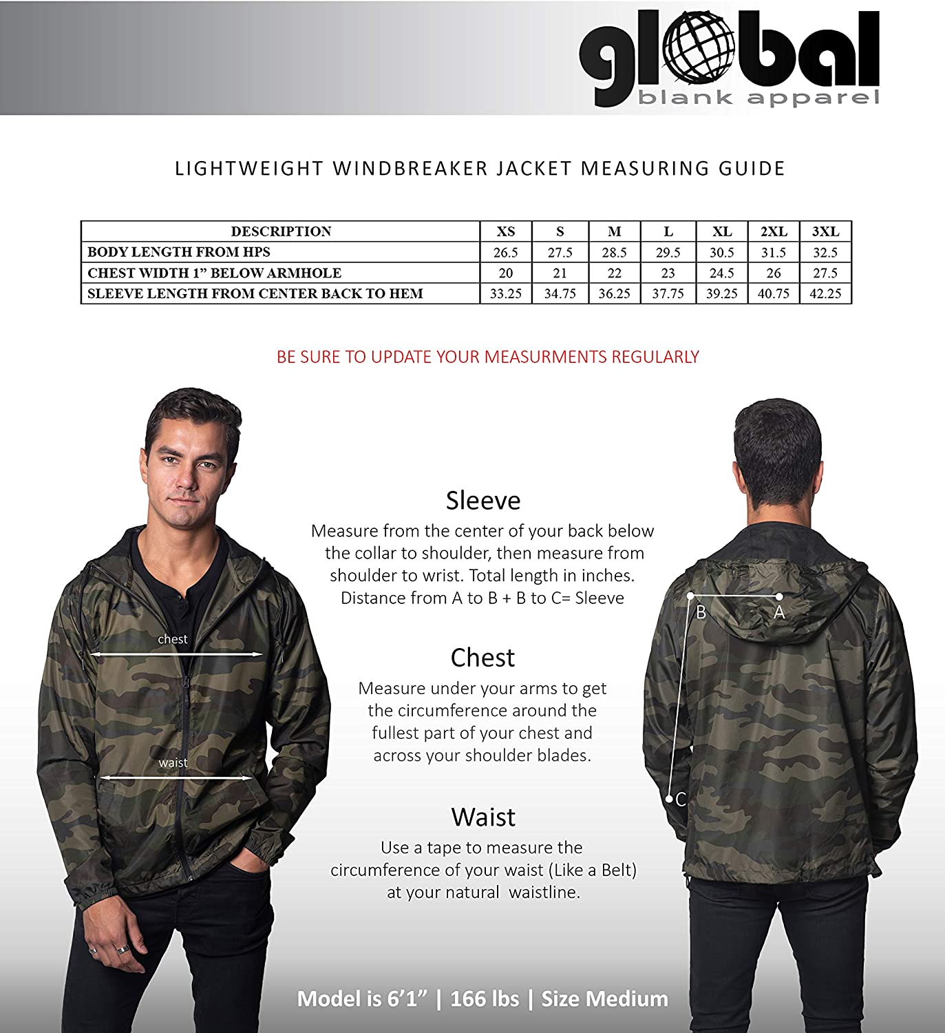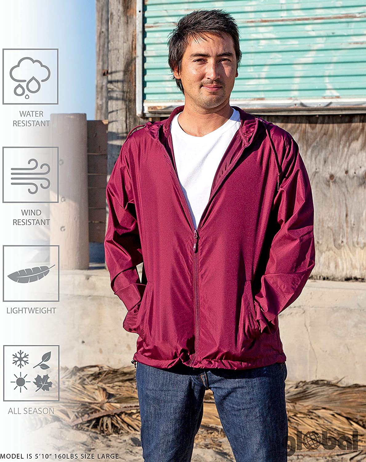 Global Blank Lightweight Winter Water-Resistant Windbreaker, Zip-Up Hoodie Jacket for Men and Women