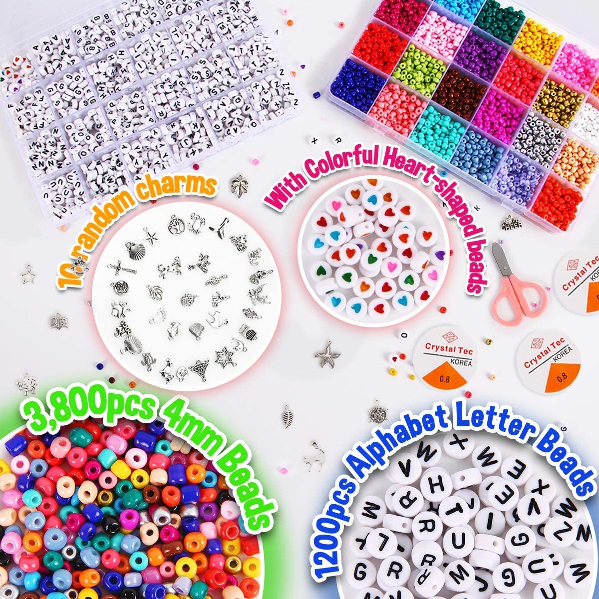 GoodyKing Jewelry Making Kit Beads for Bracelets - 5000+pcs Bead Craft Kit Set, Glass Pony Seed Letter Alphabet DIY Art and Craft - Gift for Her Women Kid Age 6 7 8 9 (4mm)