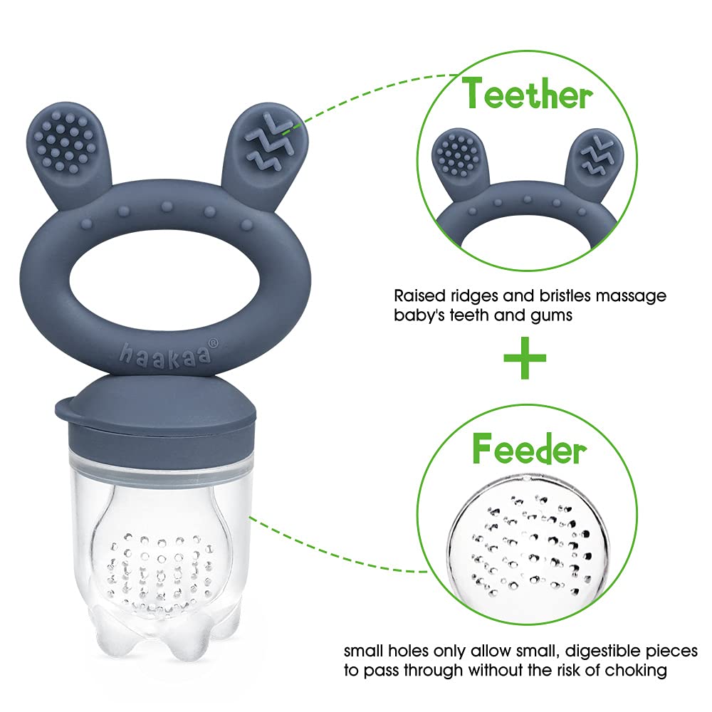 Haakaa Baby Fruit Food Feeder Pacifier | Milk Frozen Set | Silicone Feeder and Teether for Infant Safely Self Feeding, BPA Free Teething Relief Toy (Steel Blue)
