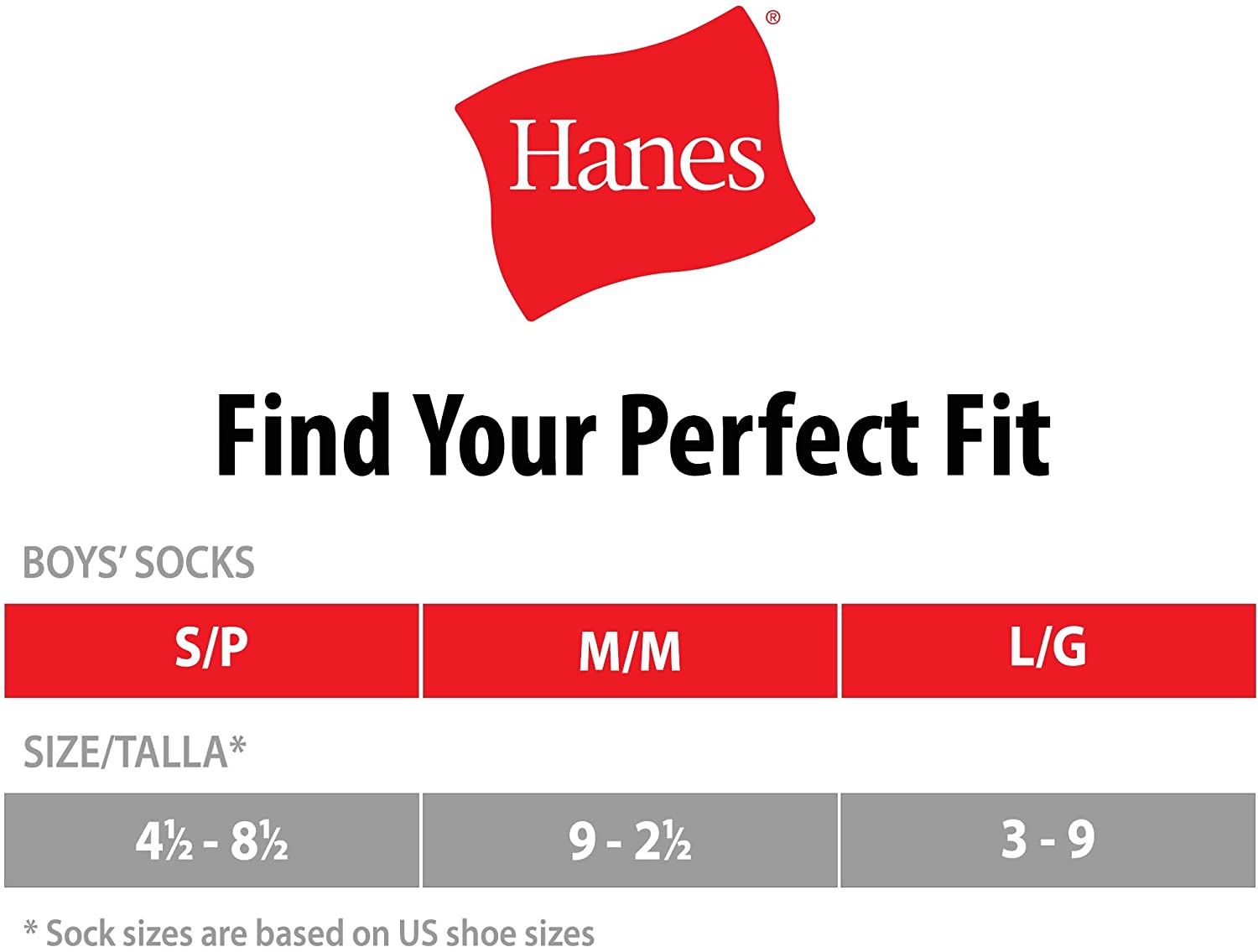 Hanes Boys' Extra Durable Cushion Crew Socks are a comfortable and dependable addition to his all-weather wardrobe and are a great value. Constructed with a soft cotton blend, these socks have a classic crew length that ends mid-calf. Spend more time playing and less time matching with our EZSort sock matching system, which makes sorting kids' socks so much easier.