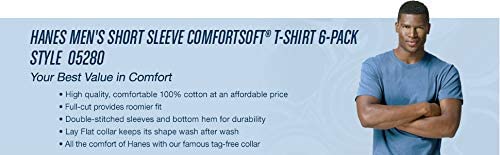 The Hanes men's ComfortSoft t-shirt is a perfect balance of affordability and comfort. This quality, comfortable t-shirt comes in a variety of 20 colors and offers a tag free neck label for superior comfort. Offered in a 6-pack for easy shopping and convenience