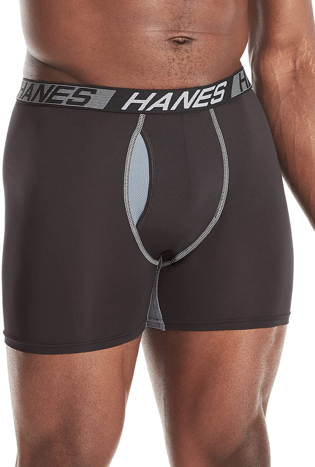 This Hanes® Total Support Pouch™ sexy men's underwear pack is one of our most comfortable styles yet, thanks to its anti-chafing design and X-Temp™ cooling technology that starts cool and stays cool. The patented breathable mesh liner helps prevent chafing by separating and supporting while the lightweight stretch fabric moves with you. These quick-dry moisture-wicking underwear also have advanced odor control, so you stay fresh and dry, no matter what your day brings. And the best part of all? This men's boxers pack comes in your choice of regular Boxer Briefs, Long-Leg Boxer Briefs, or Men's Trunk Underwear, so you can choose which style works best for you. Note: Colors/patterns may vary depending on availability.